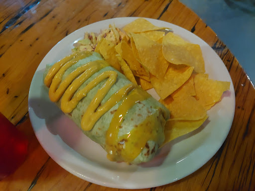 Food: The food was fantastic. I ordered the White Trash BBQ Chicken burrito and my lady friend ordered the Don't Be a Jerk Chicken burrito. We also got an order of chips and queso. I'm not sure what they put in that queso, but it is majestic. Easily the best queso (if you're into that sort of thing) in the area. Also, I love their slaw, it is really great as well. And of course, their burritos were delicious. They are really big so come hungry or prepared to take some home.
