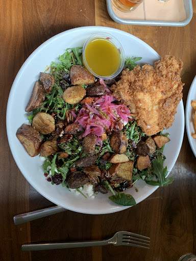 Read moreI was really disappointed in my visit. I've had Booneshine's beer before and wasn't displeased. This time I had a flight of 4 and was underwhelmed by all of them. I didn't even drink half of 2 of them. But what bothered me most was the food menu. First is, it was pretty pricey. That's not a problem, if the food hold up, but it didn't. $12 for a 6oz burger with lettuce, tomato, and onion? No thanks. I thought about getting a chicken sandwich, but $12 for a sandwich made from a chicken thigh? Seriously? Your charging breast price for a thigh? I opted to spend a dollar more and got the beyond burger. It wasn't bad, but the gluten free bun I had to get (allergies) was an absolutely wonderful sponge and horrible bread. Then on top of that, the French fries are lightly battered for that extra crispiness. Thanks for the heads-up. I would have rather just grabbed a salad and not bothered, but there salad option were either a sad iceberg wedge (still can't believe people actually pay for that) or an outrageously odd 'warmed mixed grains' salad. No clue what that is but sounds like something else that's needlessly covered in wheat. I will not be dining there again. Ever. I also won't be jumping after the beer either. If they put as much effort into the quality of their products as they do into making an atmosphere, maybe I would have...