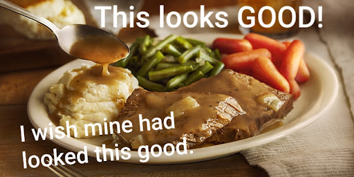 My meal was supposed to come with a biscuit, but I only received the gravy for it. I assumed that I was supposed to take the biscuit from the appetizer basket we received beforehand, but, considering how the menu worded it, I was supposed to receive a fresh biscuit with the meal when it came to the table.