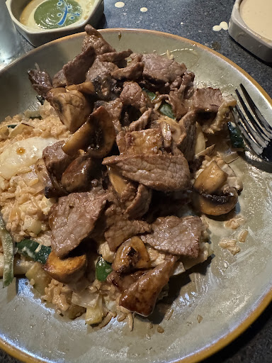 Read moreUnderwhelmed. So many problems. I hate leaving bad reviews, but the money spent and the whole experience was just not worth it. The place was kinda messy when we got there right at opening. Maybe it just hasn't had a good cleaning in a while or it'sdated and needs some TCL? The service was fast, but that equated to extremely messy. The table was cramped and the soup and salad dishes never got picked up so that added to the very limited space. The three people in our party spent the entire meal shuffling dishes. By the end of the meal there was literally food all over the floor and table. One person in our party, during the meal, got a zucchini tossed in their drink by the chef. Please know that this wasn't part of the performance. It took a fair amount of time and effort to get the waiter to come over and replace it. The chef must not have had good BOH staff because he had to ask for one person's shrimp because he wasnt given them on his cart. The same waiter didn't bring the correct shrimp when the chef asked, so the chef had to leave mid-meal to go get the right shrimp. All of that wasn't even food related. The food was the "best" part of the experience and even it was wildly over-priced. The meat looked like cheap cuts of beef and chicken, the shrimp was a little better. The rice was undercooked. The onions and mushrooms were straight up raw. The salad was the saddest little bowl of iceberg and only two dressings (dressings by definition as one was just the shrimp sauce). The chef felt rushed like the faster he got everyone out, the better. The food was slopped on plates. I didn't get veggies and the person next to me didn't get carrots, so we kinda swapped. The soup was plain chicken broth with a singular raw mushroom. I have been to so much better quality hibachi steak houses. I have had better food from fast-casual Japanes places. This wasn't it. For three people with two regular entrees and a lunch size entree, no extras, the bill was $85. We...