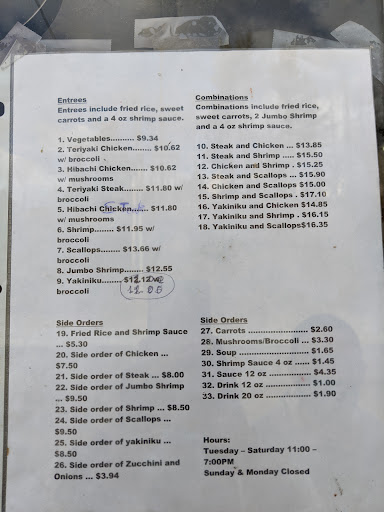 I was really excited to try this place out since it was always closed when Iād drive past. The owner was incredibly sweet and kind. She was clearly very proud of her food, her spring rolls in particular, so I ordered two spring rolls. I also got the chicken and steak hibachi and a drink. I spent around $25 in total, not cheap at all, especially when you consider the portions are very small. The hibachi is $17 and youāre not getting enough to even make that price worth it. I was willing to put the price aside and was just looking forward to the food. The rolls were amazing and her homemade sauce was incredible. But the chicken in my hibachi was RAW. I had eaten some before I noticed. I got food poisoning from this place. This $25 food was soooo not worth it and raw chicken really put me...