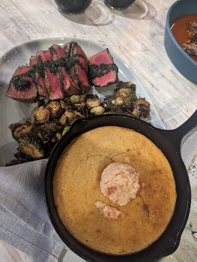 Read moreWow, where to start. This was our first trip. The atmosphere and vibe were very cool right off the bat, but that unfortunately was the high point of our visit. We were seated and waited almost 10 minutes before our server arrived. Ordered a bottle of wine and a Parallel IPA which were great. The server stopped by half way through my beer and we ordered the crab cake app which was awesome. She took our dinner order and asked if i wanted another beer, to which I replied not yet, but shortly. Then she pretty much disappeared. There was no wine service for my wife, which is fairly customary at upscale places when you order a bottle. After sitting at least 10 minutes with an empty beer glass, I approached another server because ours had vanished. And then things got dicey. The manager delivered our meals and we told him we were not very impressed with the service we were getting after ordering a $52 ribeye and my wife's pizza. He spoke to the server who told him I was done with beer which was hardly the case. He stood by his server and told us our complaint had been addressed and the matter was closed. At that point I asked to get our entrees boxed and we left with him reiterating that he was standing behind his server. I've never experienced anything like his treatment of us and the way he completely ignored trying to make anything right. I mentioned Tina, the owner's name, and he said he could get her on the phone for us, which I said yes to right away. Needless to say, he never made the call. We brought our meals home and they were awesome...probably one of the best ribeyes I've had. Unfortunately, (and I told the manager this) we always return to a restaurant if the service is great, even if the food isn't top notch. But we never return for great food and poor service. Probably the reason they weren't busy for such...