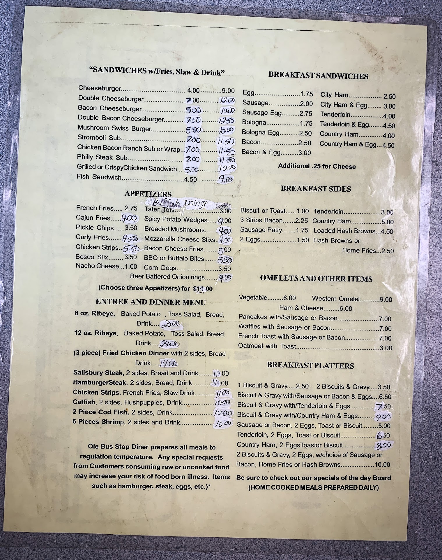 While traveling through the beautiful mountains of eastern Kentucky, we pulled into the charming town of Boonville in search of a good meal. We always enjoy discovering non-franchise, mom-and-pop restaurants on our trips — and Ole Bus Stop Diner was exactly what we were hoping to find.