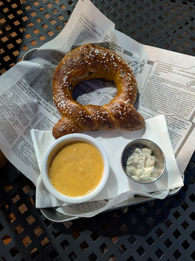 We loved the cider flight and pesto flatbread, and had the pleasure of trying out a new special menu item in advance - the jalapeño cheddar pretzel with beer cheese and garlic parmesan aïoli. You know the food's good when all you can do is chew and nod at each other in delightful silence!