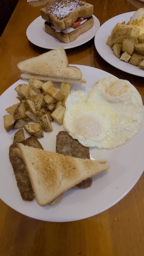 I got the corn beef hash eggs benedict. That's nobody's fault but my own, I should have just gotten ham like it normally comes with. I thought it was terrible but everyone has different taste buds. The home fries were amazing, absolutely loved it. I had rye toast, very good. The eggs benedict was actually very filling regardless. My husband got ebb tide. Which was two eggs, french toast or pancakes, he upgraded to stuffed french toast, home fries and sausage and white toast. His favorite was the stuffed french toast. Just because I rated this a three and wasn't completely happy doesn't mean other people won't like this place, everyone is different, I still absolutely recommend anyone to try it, but if your a bigger person your gonna have struggles here. Try the breakfast banana split, it looks really good. Will still come back during the summer to try it...