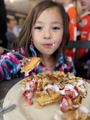 Read moreStopped here for breakfast on our road trip today. They have great size portions, and know how to make a good egg. My husband got over easy and I got the Mexican omelette, no complaints there; however on the menu they clearly say that breakfast options come with home fries, and we were both served bland, weirdly cooked hash browns. They forgot both of our toasts and when they did bring it out it was on the same plate? We ordered different from each other on types so that was really weird to us. At first I thought they just forgot mine a second time and then realized they stacked the toast on top of each other. What if we had an allergy? Half of my husbands toast wasnât even toasted, straight up just a slice of bread. He said his bacon was not crispy, my daughter only ate 1 bite of her pancake, said it tasted weird. The place was very clean and nice looking but the bathrooms are super tiny, they really should expand them or take out the second stall, my daughter and I got stuck in the bathroom because someone was in the sink/ door area (thereâs legit no space) there is also no changing table so I had to change my baby in the car and then walk the dirty diaper back inside to throw it away. My husband said in the menâs room; in order to use the stall youâd have to rub up against a guys butt while walking by if the urinal was in use. Iâm honestly shocked this place has such a high ranking, thatâs why we chose it. Iâm just passing through, but if I lived here I would...