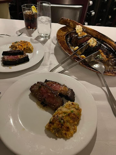 For the main course, I had the 14 oz dry aged filet with a side of their French onion potatoes. The steak was cooked to a perfect medium rare, though it was a tad saltier than it should have been. A big steak like that definitely needs to be seasoned well, but this went a touch too far. The steak had a beautiful crusted exterior, and the demi glace with rosemary imparted great flavor. The quality was on par with many of the high end steakhouses I've tried in NYC and Philly. The French onion potatoes were amazing. I didn't see how much butter and cream they added and I don't want to know. They were rich, creamy, and decadent and I highly recommend adding them to your meal. Fantastic. Dessert was their tiramisu, and I try it anywhere it is on the menu. This was easily in the top 5% I've tried. The lady fingers were soaked in the perfect amount of espresso, giving pleasant moisture without making the dessert soggy. The cream was rich and not overly sweet, and the dusting of cocoa on top was enough to be present without overpowering the palate.