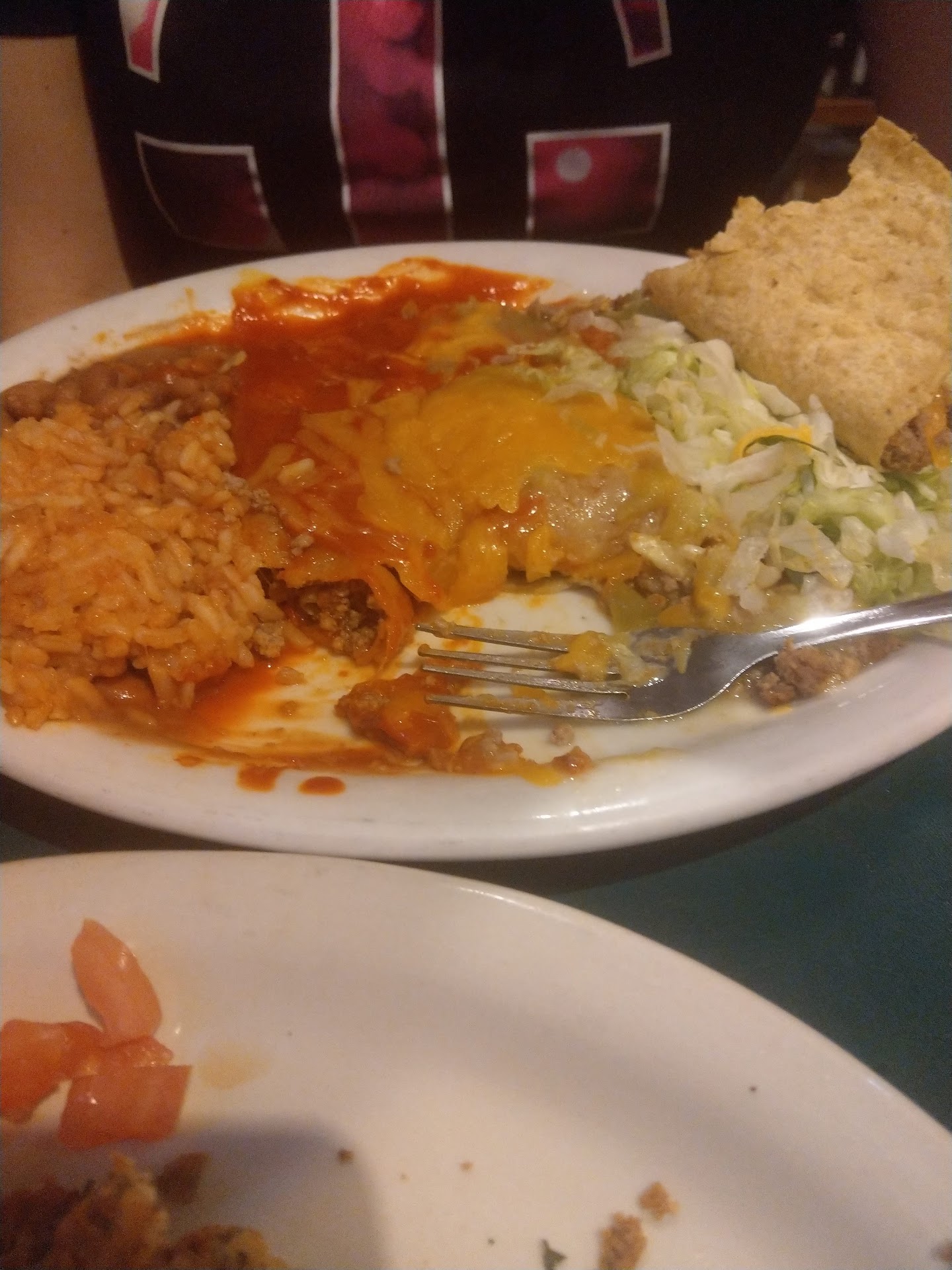 Read moreBroke my own rule and went here an hour before closing. They were very busy. I can see why. They didn't make us feel rushed at all. Several families came in after us. The service was great. Very attentive, we never had to ask for refills or anything else for that matter. The server and the host frequently asked if everything tasted good, if we needed anything, etc. Now for the food. I assume everything is made from scratch here. At least what we ordered was. The cheese burger was a fresh ground beef patty, not frozen. It was cooked medium well and actually had seasoning on it. The hand battered chicken fried steak was very good. The steak fingers were a cfs cut into strips. Which was fine with me. The flavor was great! The combo plate with beef enchilada, relleno & taco with red & green was also very flavorful and tasted great. Fresh sopapillas, fresh chips & salsa. I was honestly impressed with this place and highly recommend it. In summary; great service, fresh, hot, made from scratch food with lots of flavor. Try it you...