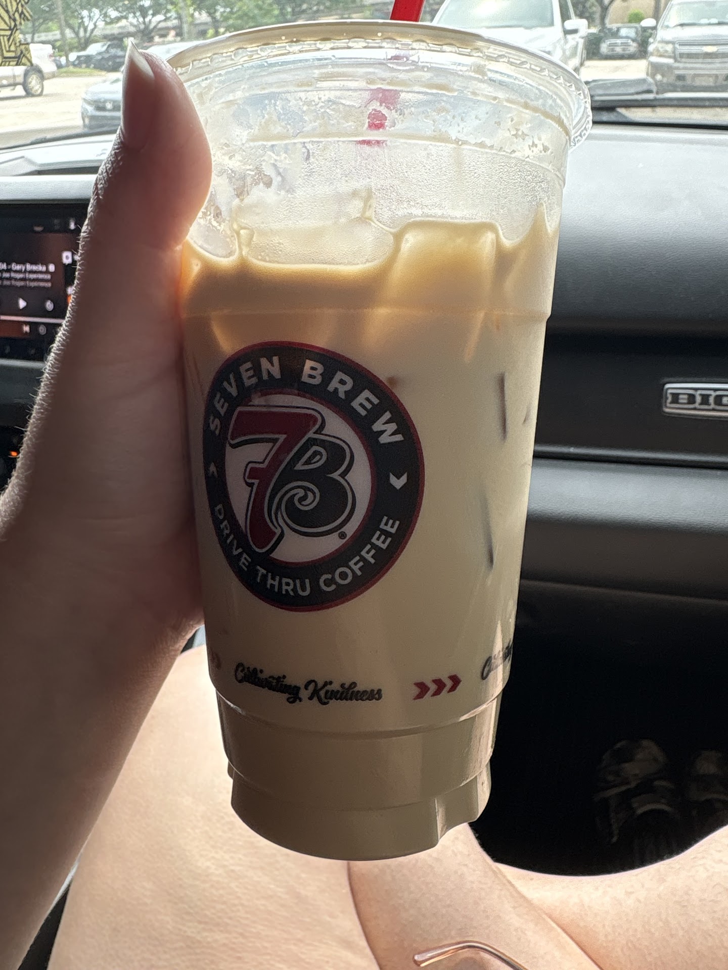 Saturday night: I was so excited to see Seven Brew finally open in Bossier! I’d only ever had it in Branson, MO, and absolutely loved it there. The coffee here was just as delicious, and I was especially thrilled with the wide variety of sugar-free options – huge win!