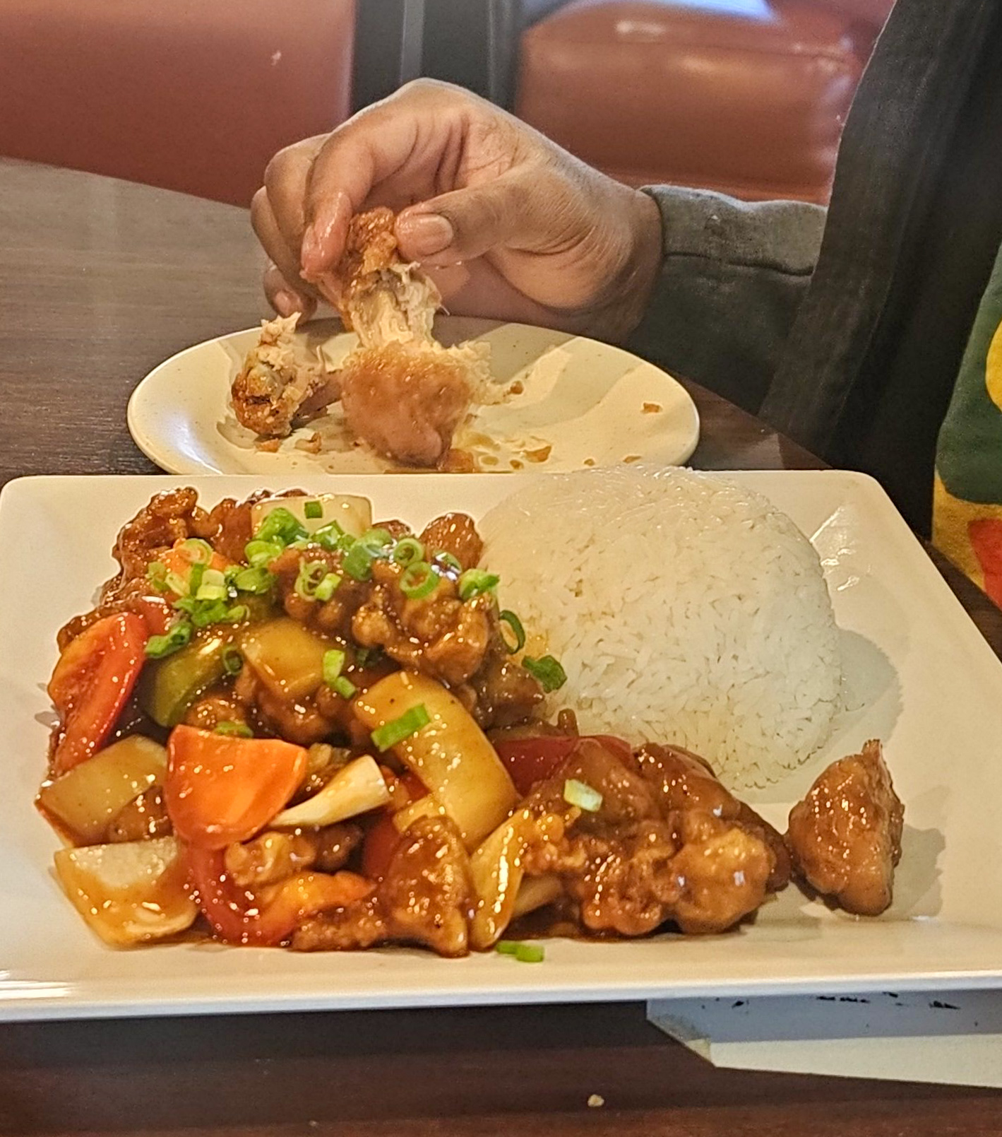 We walked in, and we're greeted immediately and then sat. Off to a good start.We said we needed a minute to look through the menu since our server was trying to see what we wanted to order as soon as we were sat. She literally gave us so much time we sat there awkwardly since there is no background music playing, and you can hear everyones conversations around you. I finally asked my husband if he could see our server, and he said yes, she's playing on her phone. Finally, she came back to the table, and we ordered the fried chicken wings, and they were promptly brought to the table. They were nothing to brag about they lacked seasoning. The booth was on the larger side, so it was awkward that our server didn't bring out any side plates for our appetizer. My husband and I would get a wing and eat one, then push the plate of wings to the other side of the table so that the other one of us could enjoy a wing. It was very awkward. Our server never checked back in with us to see if we needed anything. I finally took out a napkin and used it as a side plate. Our server only came back to the table to drop off our food. The rib pho did have a good flavor, but it was awkward having 3 ribs in my soup, which I had to literally shred the meat myself to place in the pho. My drink went empty, and she yet again never came to the table to check on us. The only time we saw her was when she came to deliver the check. We had ample food left over and had to get togo boxes, which was a joke. It looked like quart size containers that were almost impossible to pour your pho into without making a mess. I told her I wanted to take the ribs home for my dog, and she brought out a plastic bag. I still had plenty of meat on these bones, and having to place them in a plastic bag was not pleasing. Overall, the food was just ok, nothing to brag about, but the service...