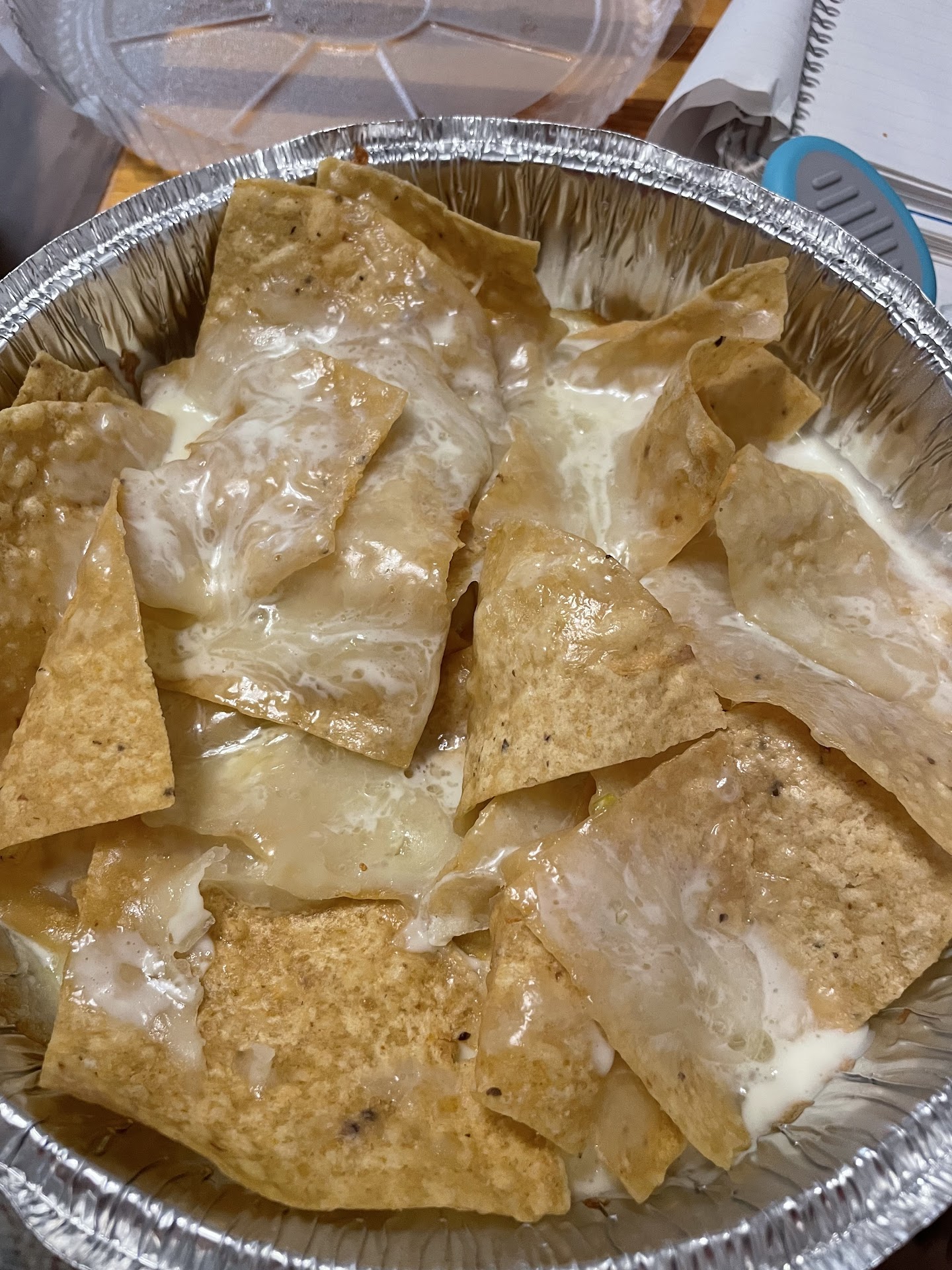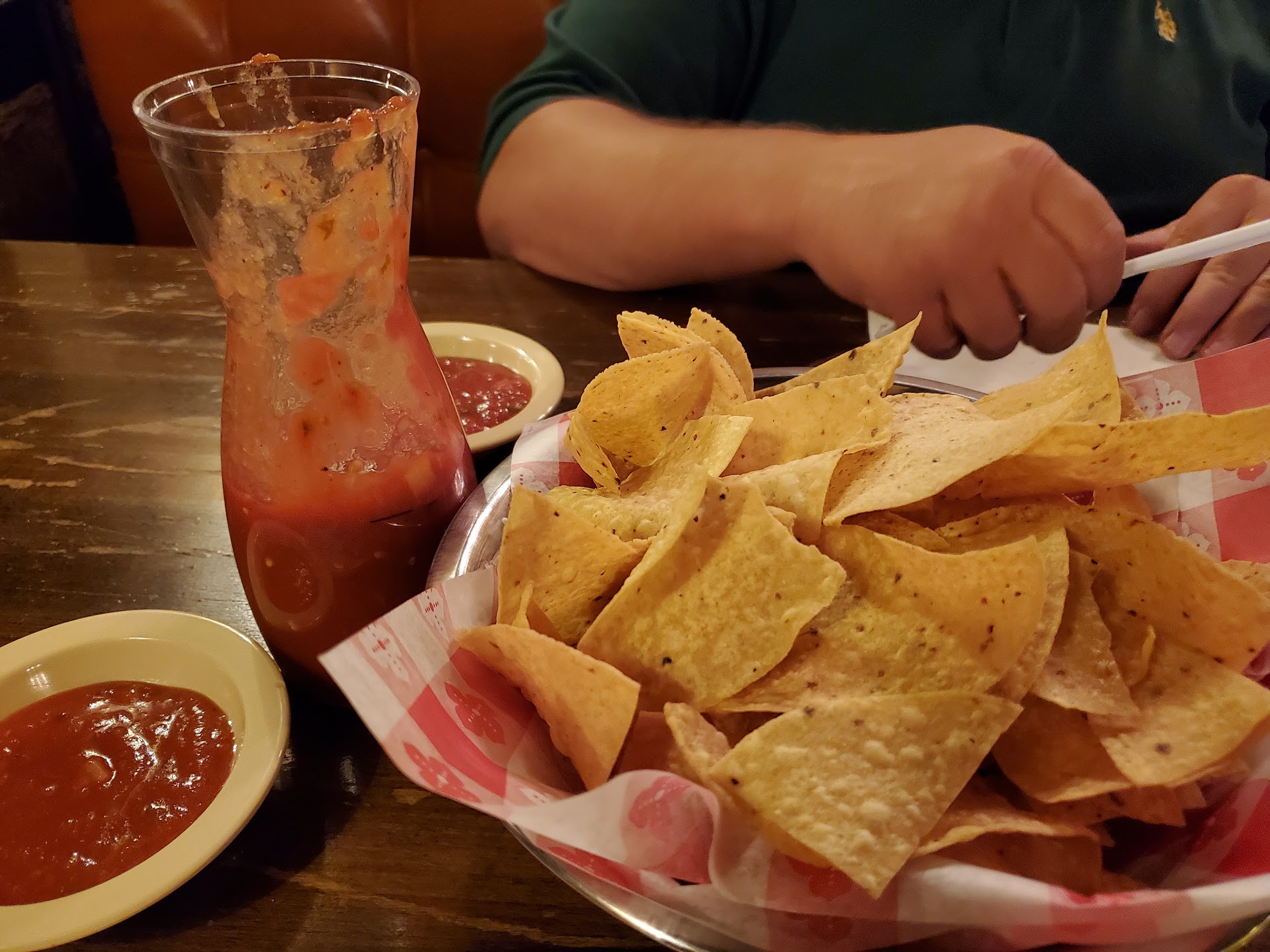 Chips and salsa... Salsa was really pretty good and spicy enough even for me. Chips were light and crisp, but the ratio of too small to use vs. usable was too high. Figure out how NOT to fill the customer's chip basket with chip debris.