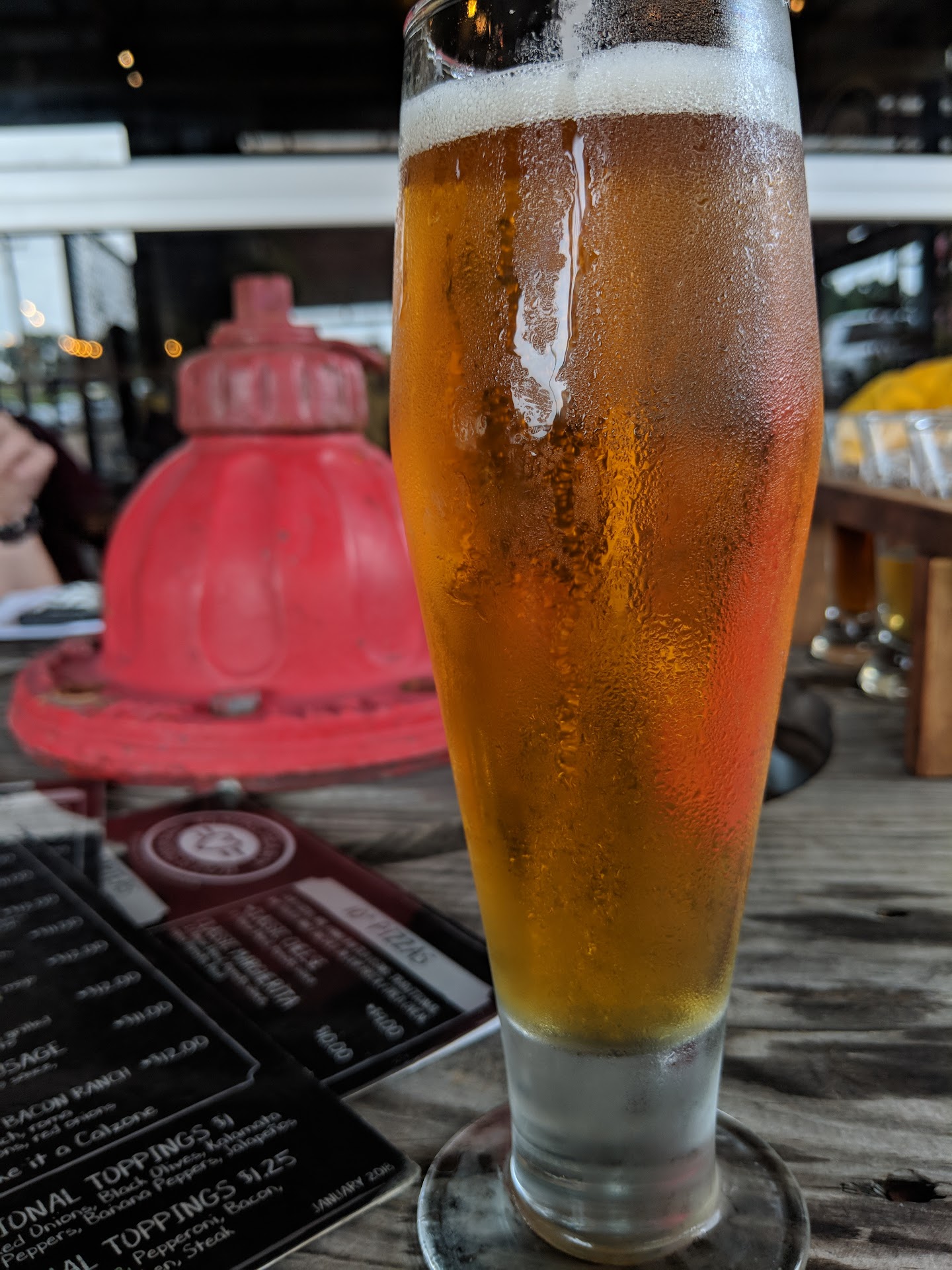 I first had the Scottish Ale and it was delicious. Then, I watched a margarita pass by and had to have one. It was excellent and they use fresh lime juice. Tiny suggestion? Stock Gran Gala (way cheaper and better flavor in my opinion than Gran Marnier). With that as a marga topper, it would best anything in the area (I've tried most of them.... Using store bought mix yuck).