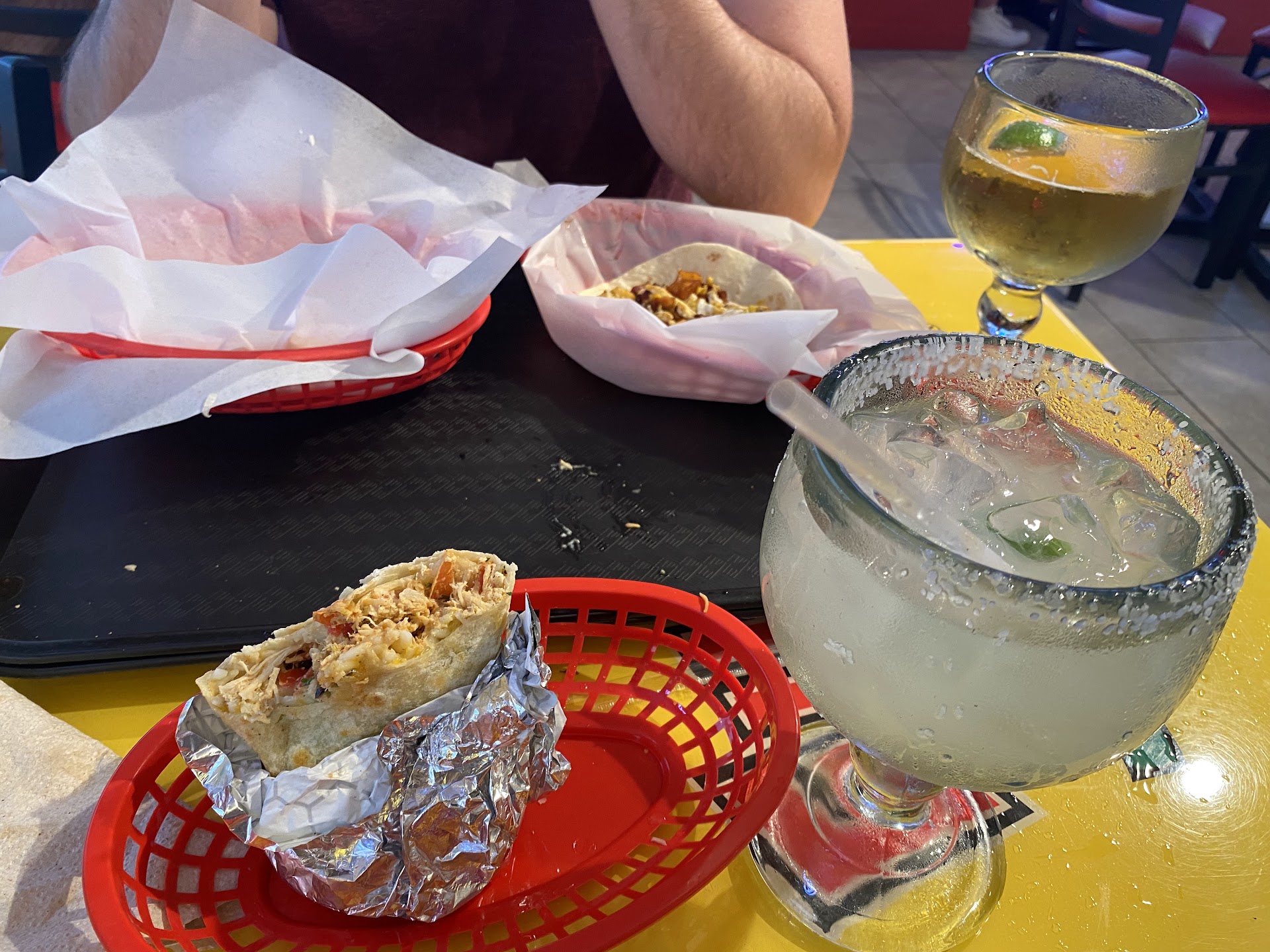 Read moreThe food & drinks are pretty good. The prices are very good. The flow of service is just nonsense. Walked in on a Weds at 8 PM, line to the door, no cashiers. The bartender did not seem concerned at all and continued her conversation with her customer. Two employees came out of the kitchen with food in their mouth and a shocked look on their face. There were no menus provided in the line or a QR code to scan to see the menu. Had to wait til we got within ordering distance to figure out what we wanted from the extensive menu. Ordered, the cashier was friendly, knowledgable & courteous. We had to pick up our own drinks from the bar- heavy glasses filled to the brim - and a beer was served in a goblet. Why not a mug? Had to get my own straw from the beverage station for the margarita. We apparently need to hand a ticket to a food runner to redeem our queso (?). Our number was called for the queso and had to get up once again and stand in line to pick up. Sat back down and our number was called for the food. Had to get up and sit down about 5 times by the time we finally ate. I don't really understand why customers are responsible for getting their own food when the maximum distance from food window to table is approximately 40 feet. Overall an extremely laborious dining experience. Needs A LOT of streamlining. Also the constant number calling over the intercom was annoying. Would order takeout, but would never dine in unless they improve the extremely...