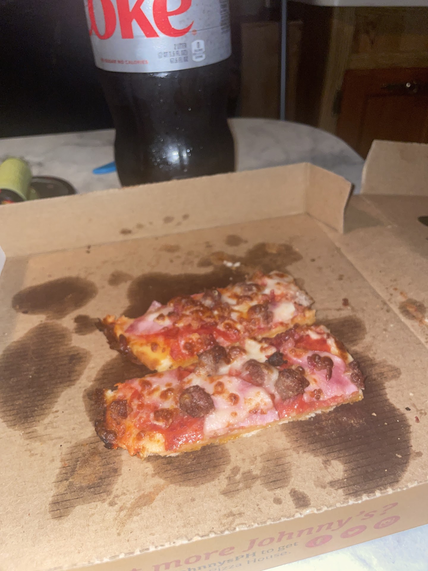 I called to place a pick up order, just a small mighty meaty with a side of nacho cheese sauce, I let them know that I needed curbside service because I had a sleeping toddler in the car and I was told that was fine. That was awesome because I usually go to the Airline drive location because they have a window, but their wait time was an hour and this location said 20 minutes, also awesome. I called once I arrived and let them know that I was outside and I wanted to add a 2liter Diet Coke and a cup of ice to my order, also not a problem! The customer service was great, because it was a different employee each time I called and both were professional and had no problem accommodating me. I didn’t wait long and Maria brought my order out, that made my night because Maria and I have worked together before at a different restaurant and she’s such an amazingly sweet person and didn’t know that she had changed to this Johnny's location! That means I’m switching to this location too! I had a long day and needed my comfort food. I get all way home (North Shreveport), unload my sleeping grandson, then unload everything from the car, I get the baby tucked in, throw on my pajamas, fix myself a big glass of Diet Coke, then I get comfortable and I open my Johnny’s Pizza box only to find that they forgot my nacho cheese sauce! I really love that sauce, I almost cried! I could have called and complained, I could have left less than 5 stars, I could have left a bad review and blamed the employees, OR I could have been more responsible and checked my box before I left Johnny’s! I’m not MAD, I’m full. I have sat here and ate all but two pieces of this pizza (without nacho cheese sauce) and I didn’t even reheat it because it was cold by the time I got home! Still...