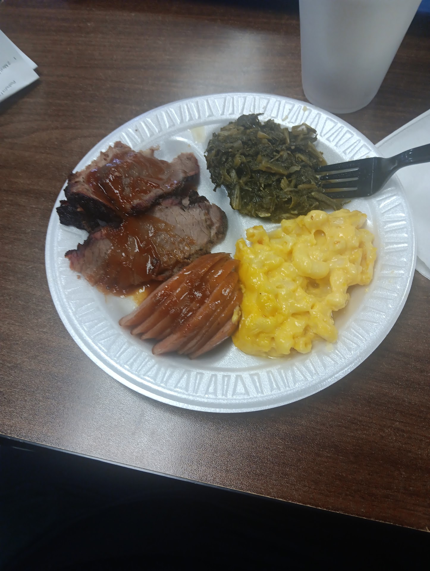 Read moreWhen I think of BBQ I think of something that's made with time and real ingredients. The sausage is ok. The taters(mashed) ain't even real taters. Pity cuz instant taters aren't served with BBQ. Had I known this was the case I would've gotten the baked tater instead. Tater salad leaves something to be desired as well. It's almost as if they used the instant taters to make this as well. It's sad a BBQ joint can't even offer REAL potato dishes yet serve baked taters. Back to the sausage I've had worse and I've had better. So there's that at least. Restaurant was clean so that's a positive. Hostess was polite courteous and quick in prep of the meats. Corn on the cob left quite a bit to be desired as well. Ribs weren't too bad. IMO don't waste your $$ or time unless you JUST HAVE to have...
