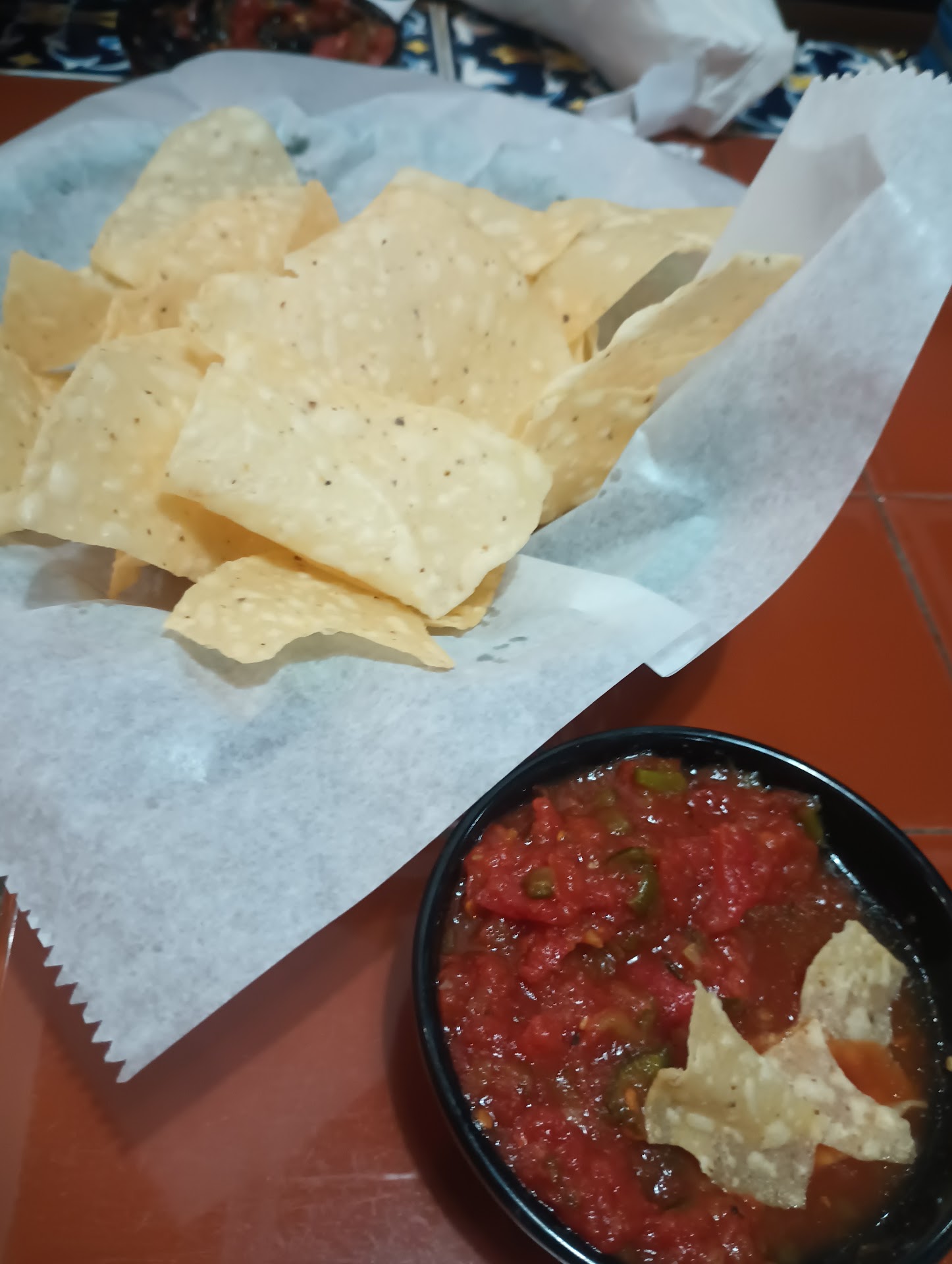 Food and service: Hot sauce and chips were good. Good tasting salsa and very good crispy chips. Food came out in a timely manner. Food's appearance was great! (Al Pastor quesadillas) Taste was not as flattering as appearance. Waitress was attentive but could use a little more personality.
