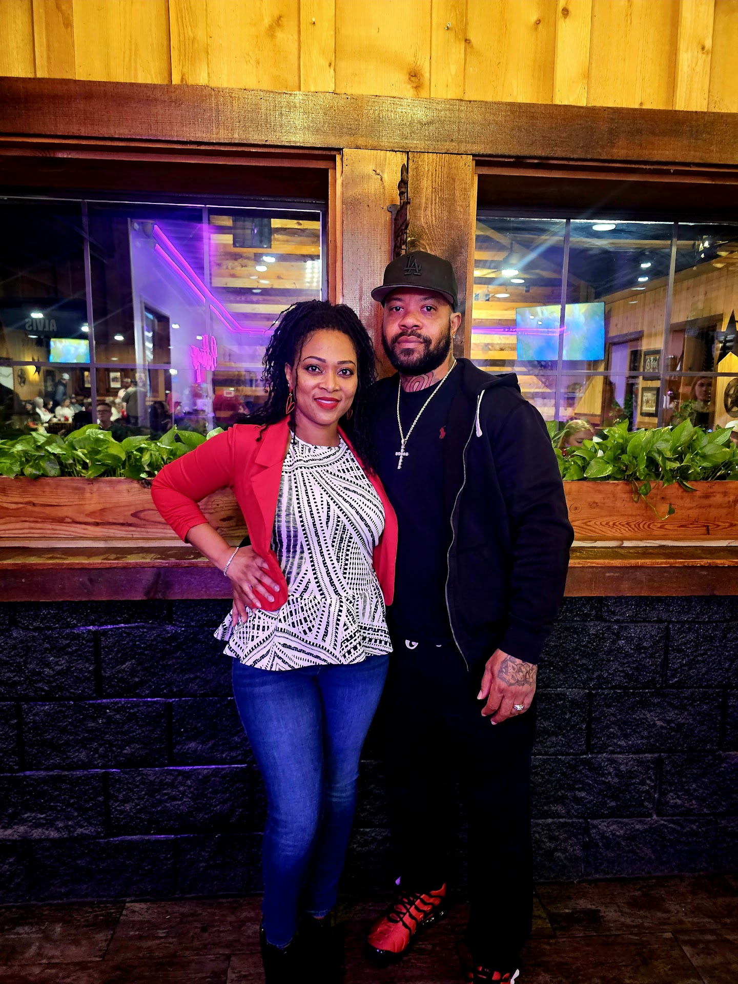 Read moreWe were in town visiting as we frequently do in this area and we wanted to check this place out since it’s close to where we usually stay. We went in on a Saturday night and it was busy. We were told we could sit anywhere in the bar area so we did. The bar area was big and a nice atmosphere. We waited quite a while to be acknowledged by anyone working there. After some time the blonde waitress with boobs pouring out of her jacket came over and took our order. We ordered drinks and food which she served and then she left walking out the bar door. She left us and a few other tables for quite awhile. We ordered bbq nachos which was a generous helping but it was drenched in bbq sauce which made them very soggy and wow the flavor was way too much. Some of the sides of the dish were burned and not edible. We also ordered the sausage plate which was just okay. The sausage was kind of cold and the bread was stale. We sat there quite a long time with no waitress in sight. We needed refills and had to get up and ask the bartender for them. She wasn’t very friendly as she was too worried about flirting with the man in front of her. At one point she was on the other side of the bar sitting with the gentleman, it was weird, like who is working your bar. After some time we asked a young girl cleaning in the bar to get our waitress, which by the way she seemed to be the only working in that area. Our waitress came and we tipped appropriately even though she didn’t do a good job. Not sure if we will visit again, the whole experience was not good and the food was just eh. It’s a shame we had hopes of this being a place we would visit often as we come to the area quite a bit. Very poorly run bar with staff that seems more interested in hanging out...