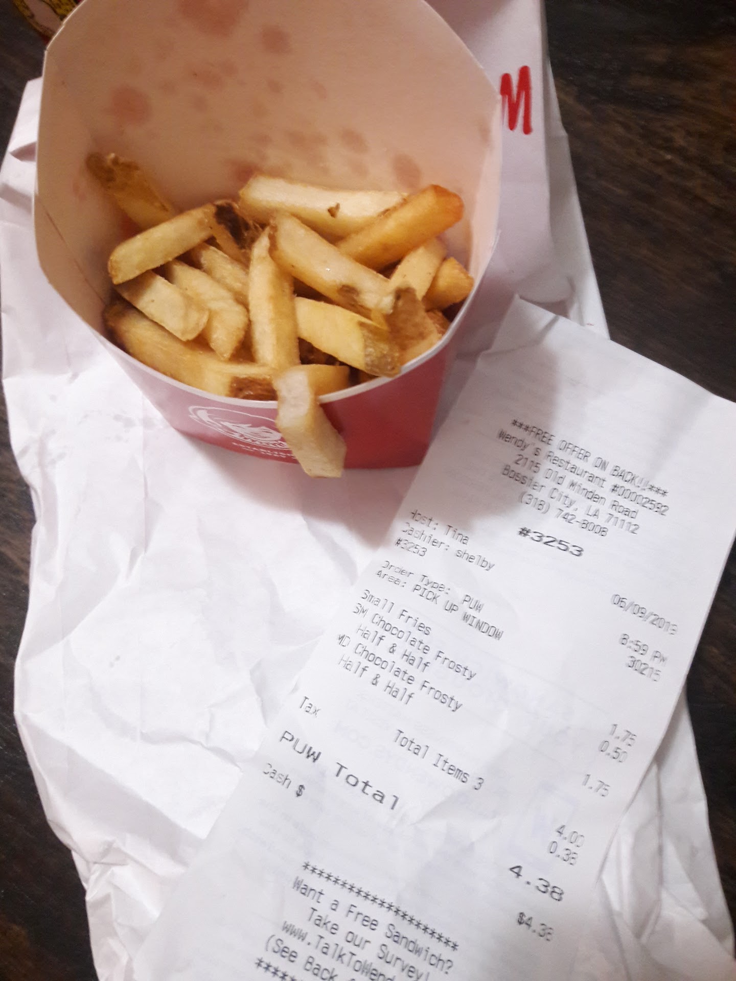 Read moreWendy's drive thru time wait is always long even if there aren't any other cars waiting. There fries are never fresh or hot the last few times I have went which has been all thus week and last. I have been served old hamburgers patties on my burgers. Which I know they are supposed to remove after a certain period of time and prepare for fresh. Nuggets have been okay but still you can tell they have been sitting there for awhile. But my thing is if you have your customers sitting for longer than 10 minutes in drive thru after their order has been taken. There's no reason why any of the food in the order should be old or not fresh. For the time it takes to get the order waiting in drive thru or at the window that's enough time to drop fresh fries,nuggets and have a fresh patty oe chicken for the burgers. If they are going to make thr customer's wait extensive times as they do at least make it worth the wait. I have been late going back to work from lunch because I've literally have spent that much time in the drive thru waiting. I don't know if they are running on a skeleton crew or they have a lot of newbies in there. But the food aspect and wait time hasn't been good. Now I will say that the customer service kind of makes up for it. They greet you when you are ordering and at the window. But that's it. And I...