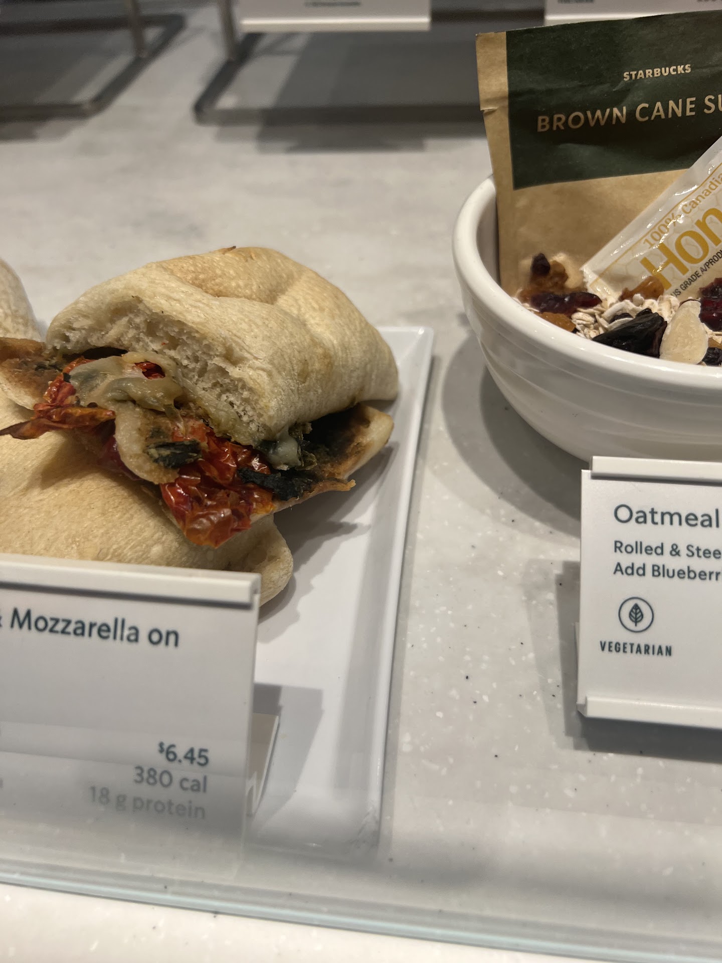 I ordered an iced apple crisp non dairy cream chai, a plain bagel with cream cheese, a mozzarella string cheese, and a birthday cake pop. The store had none of these in stock, despite them being on the mobile app when I placed the order. However, the staff was apologetic and politely asked if I wanted to make a replacement order. I ordered the cold brew with vanilla sweet cream non dairy cold foam, even though I haven't enjoyed Starbucks' cold brews in the past. The batista who assisted me that the sweet cream was enough not to have to add more milk or cream. When I received my order, though, the drink was as bitter as every other Starbucks cold brew I've ever had. I had asked for 10 sugars to account for the bitterness and the drink size, but the baristas never stir the drinks properly, so I'm sure all the sugar has settled on the bottom and the drink is still just as bitter. When I asked for a ham and Swiss croissant to replace the bagel, the barista was kind enough to give me an extra one. There were no more birthday cake pops so I asked for a racoon one, which the barista forgot, but I will go back and ask since I only noticed once I was out...