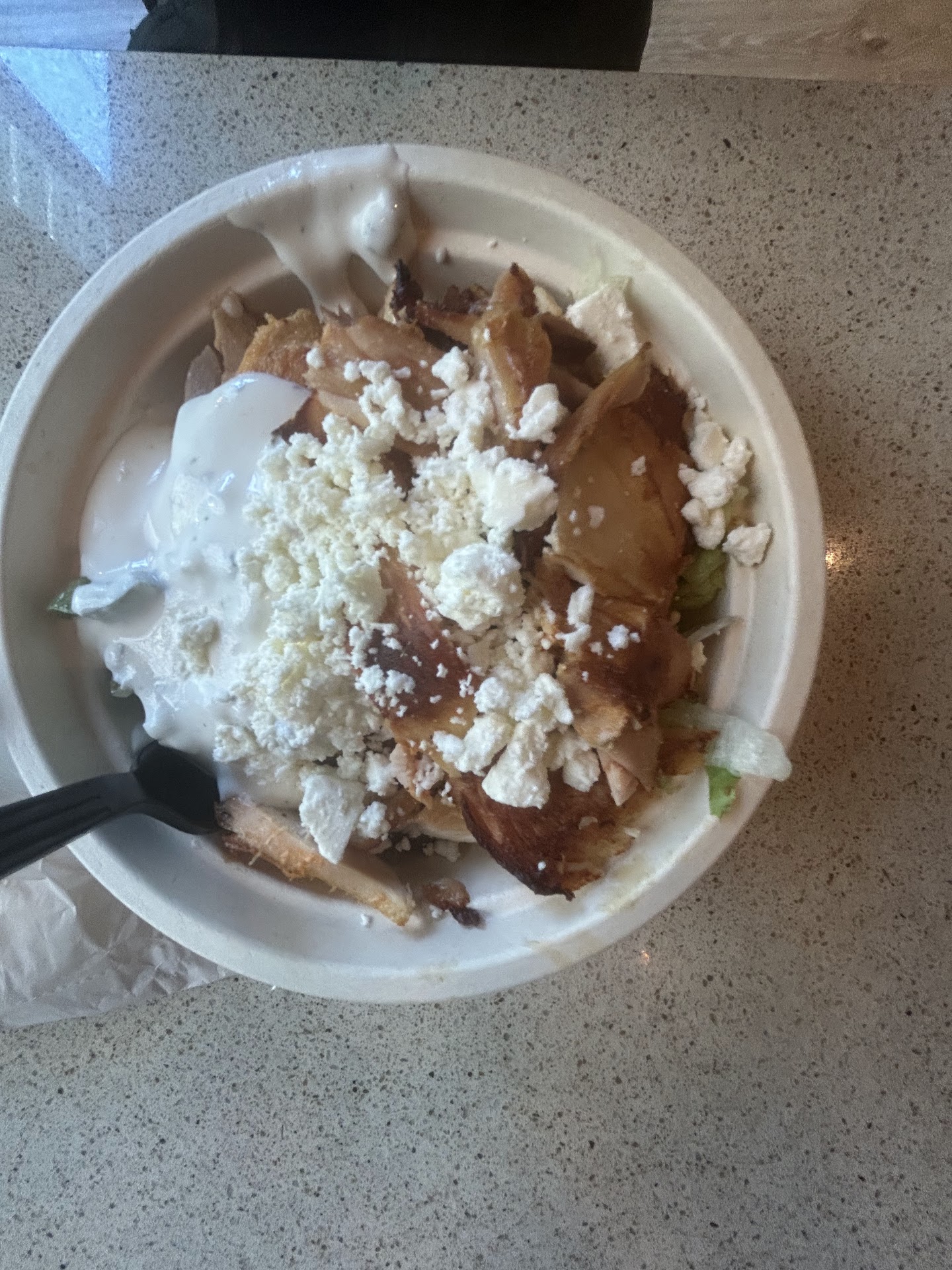 Food was disappointing. My daughter ordered the Greek power bowl and I ordered the fattoush salad with beef and lamb shawarma with 2 sides of baba ganoush and spicy potatoes. The potatoes were half cooked, some pieces were still super crunchy. The shawarma meat was super dry and under seasoned, tasted like they were a couple of days old. Spent $32 of what was sub-par not delicious Mediterranean fast food. We could have gone to chipotle or poke bowl places next door and have gotten more satisfying...