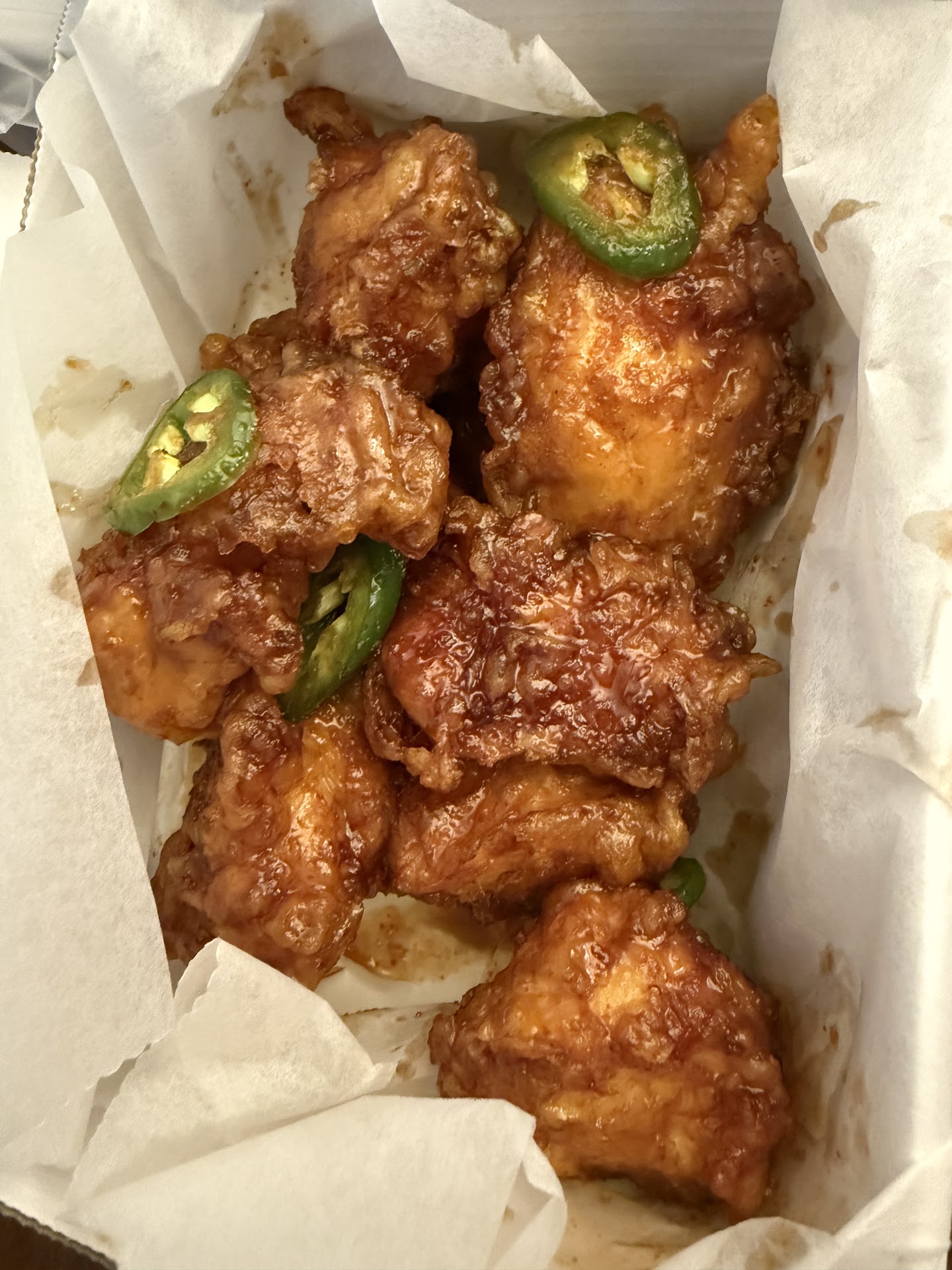 The texture is spot-on—crispy on the outside, tender on the inside, and absolutely drenched in that glossy, flavor-packed sauce. It clings to the chicken just right, ensuring each bite is loaded with flavor without being overly messy. Whether you’re pairing it with rice, veggies, or just enjoying it on its own, this dish delivers on every level.