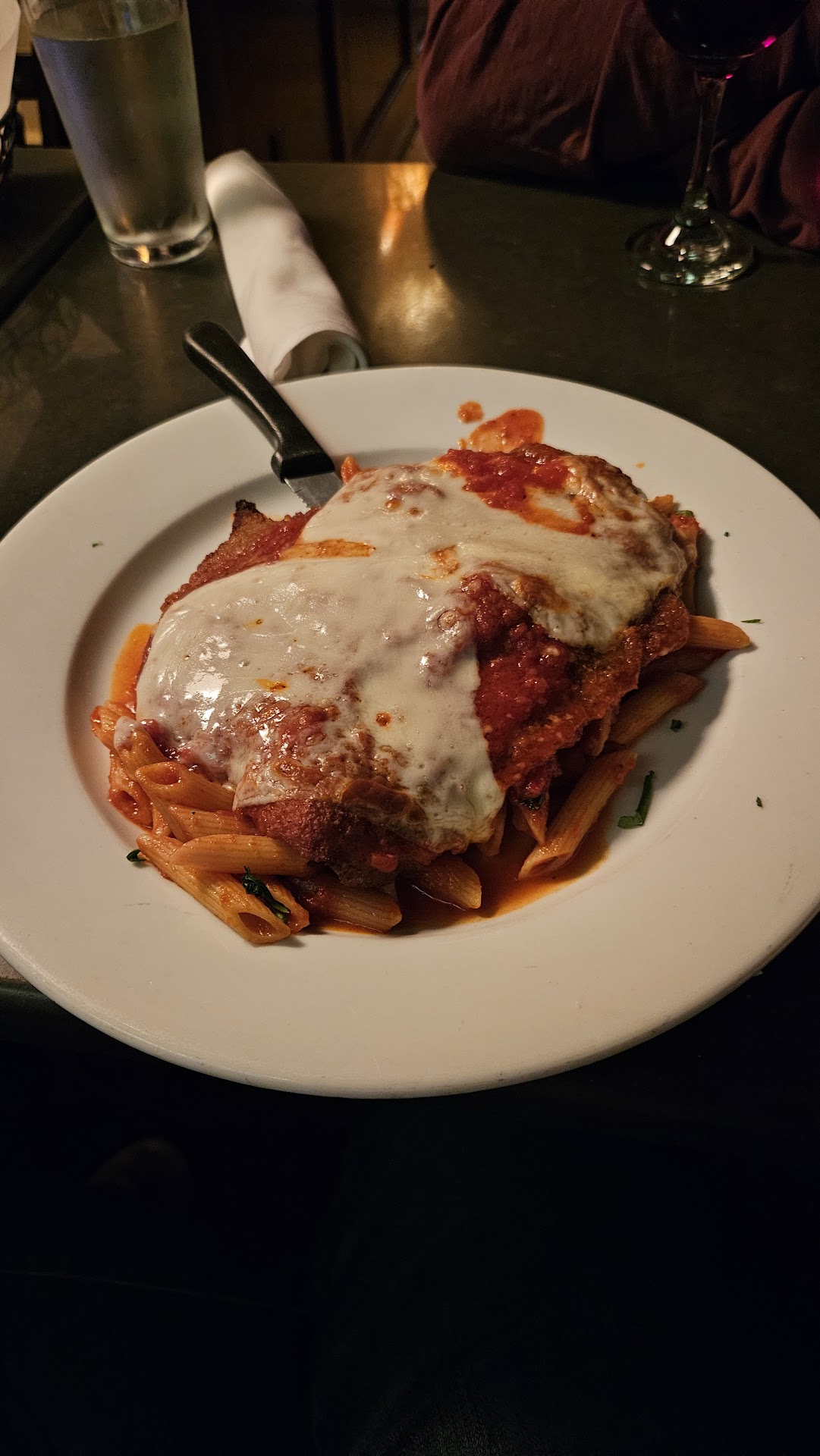 BUT WOULDN'T YOU KNOW IT - a few hours later we returned for dinner and this time sat at the bar. It was around 6pm on Saturday and the restaurant's big outdoor patio was full, as was its good sized, very pleasant golden interior. This time we ordered another signature drink, the MUST-TRY pumpkin ravioli, a delicate and piping hot generous bowl of fettucine alfredo with al dente angel hair and again a solo meatball in marinara with more fresh-grated parm. Our bartender was FANTASTIC and the food was INSANELY AMAZING!