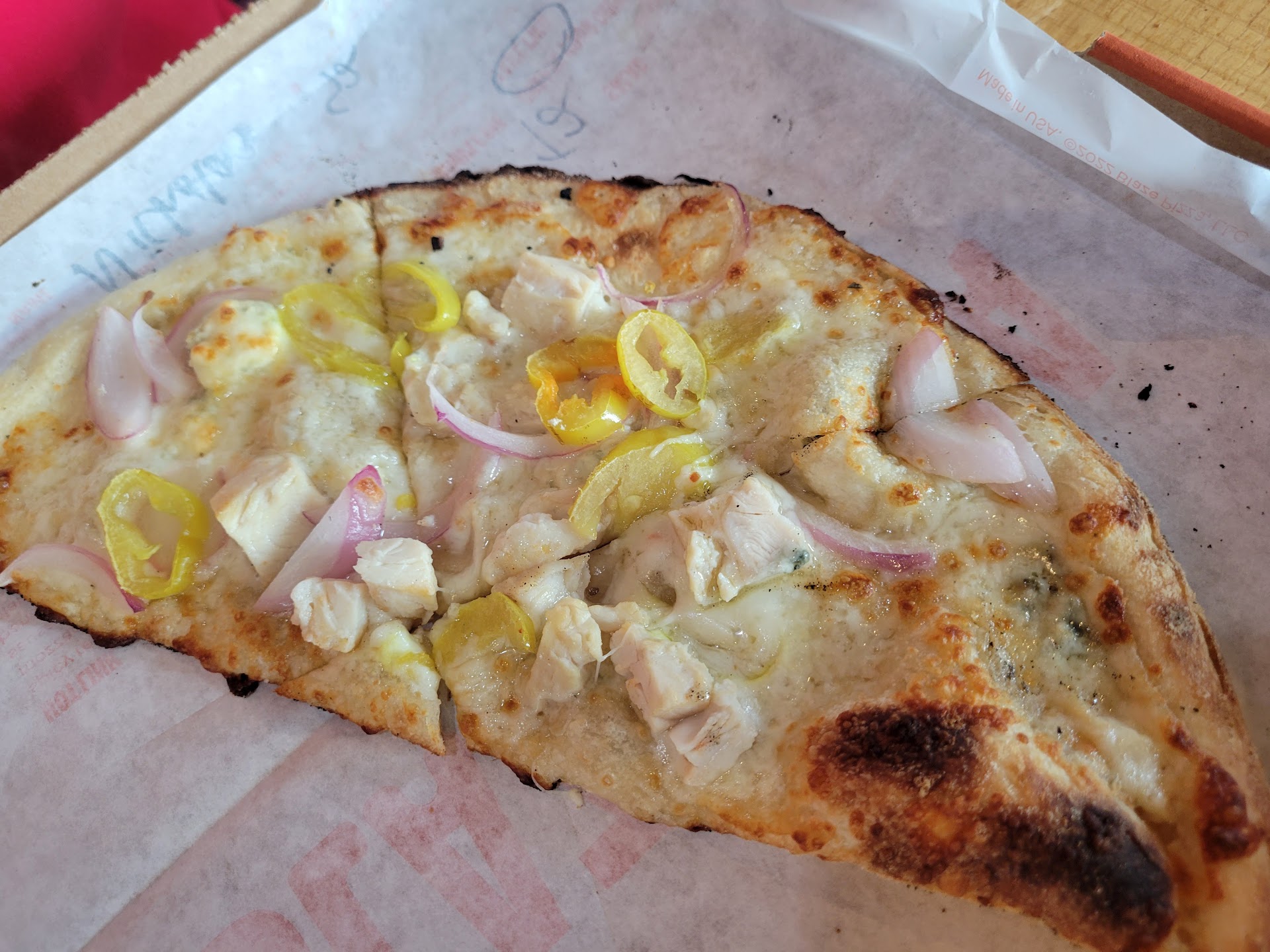 Read moreWe stopped in here one night after a concert at Fenway had ended, and I understand the place got crazy but it was an absolute disaster. I heard about three people in front of us be told "sorry we're out of XYZ", the staff was kind and professional about it but they were out of a ton of stuff. We completely threw the staff for a loop when we ordered a pizza with half being only cheese. We chose our crust, sauce and cheese and by the time our pizza got to the toppings lady - she just picked her own! What?! So strange, she didn't even ask. She put on what appeared to be chicken and sausage over the whole pizza. They were busy, and hectic so we just decided to roll with that pizza because we are easygoing and understanding people. However for over 40 minutes we waited and waited for our "mystery pizza" to come out. The system was an absolute disaster. The point of my review isn't to bash this place, but I want to give a huge shout out to the blonde woman working expo/pick up pizzas who was doing the absolute most, with a big smile with what was a mess of a situation. If she isn't the owner, she deserves a raise because she was busting her @$$ to keep things flowing. Random pizzas were coming out and not matching orders, other guests were going up to her complaining, talking to her, asking if/when their pizzas would be done. Had I been in her shoes, I would've walked out 10 minutes into that nonsense but she kept her calm, smiley and professionalism throughout. This place needs better systems in place, expo can only do so much when the kitchen is pumping out incorrect pizzas and leaving her to deal with the mess. After 40 minutes we just settled on whatever pizza they had given us (which wasn't even the mystery pizza we saw the lady put toppings on) which was'nt the best but my husband ate it. I was suprised by so many good reviews, because so much went wrong. But the blonde chick working Thursday 7/18 night is an absolute rock star and she's the reason I wanted to write this review and give her...