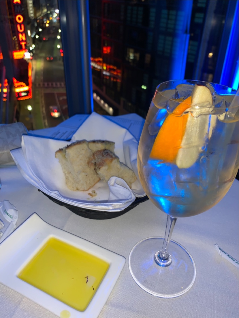 Once inside Blu, the atmosphere was comfortable and modern. The wall of windows looks out onto the theater district which provides a nice backdrop for dinner, drinks and conversation.