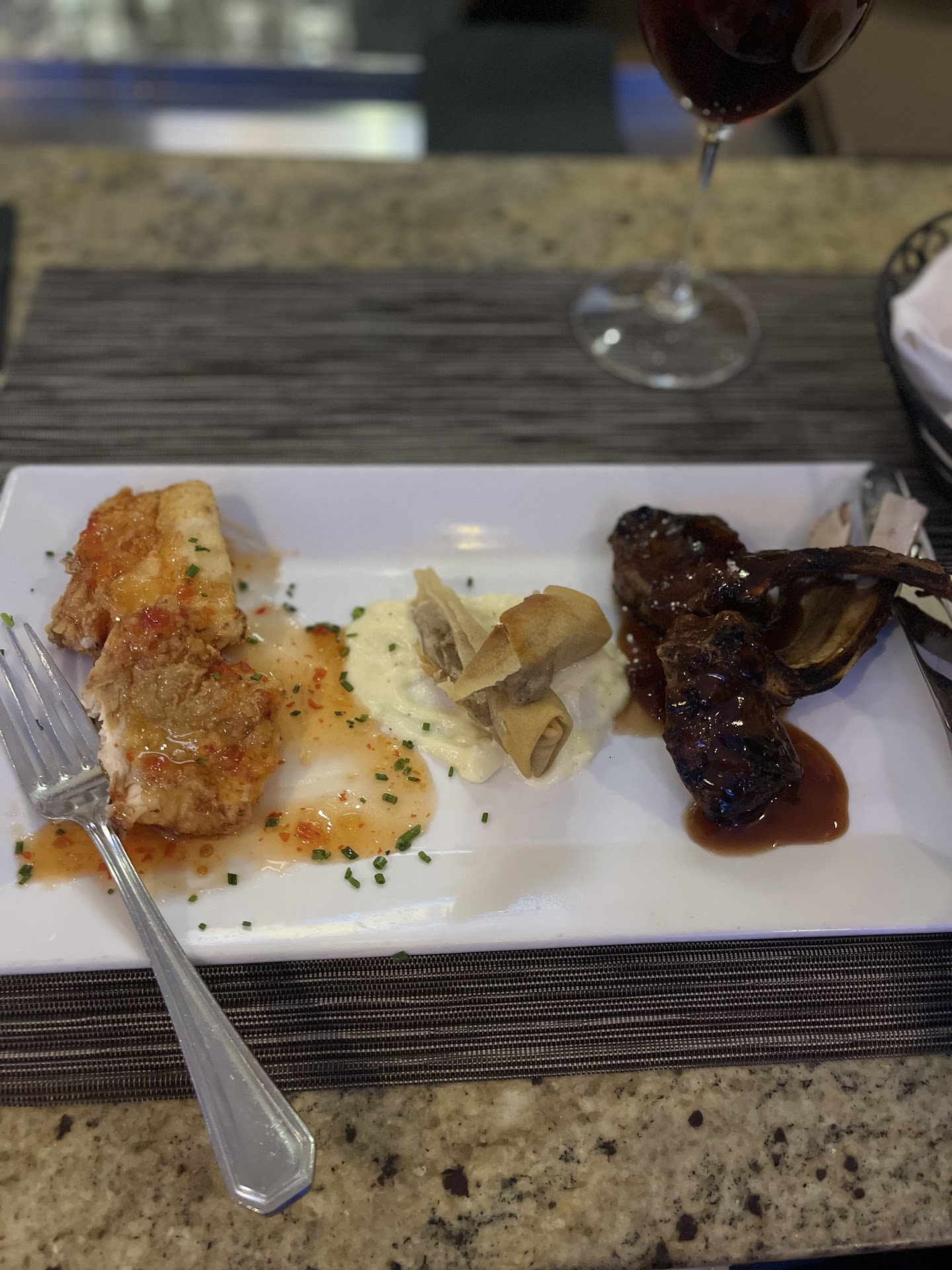 My wife and I shared the Tuscan Kale salad which they offered to serve on separate plates. The salad was fresh and very flavorful with a delicious lemon vinaigrette dressing which was offset by the currants and topped off with a generous portion of shaved parmesan. We also shared the Turkey and Quinoa Meatballs which came with a Sriracha aioli. The meatballs were tasty with some Mediterranean seasoning and we both thought they would be a great item to attempt to make at home. Our entrees, Herb Roasted Cod and Braised Beef Short Rib, were both outstanding dishes with balanced flavor and cooked to perfection.