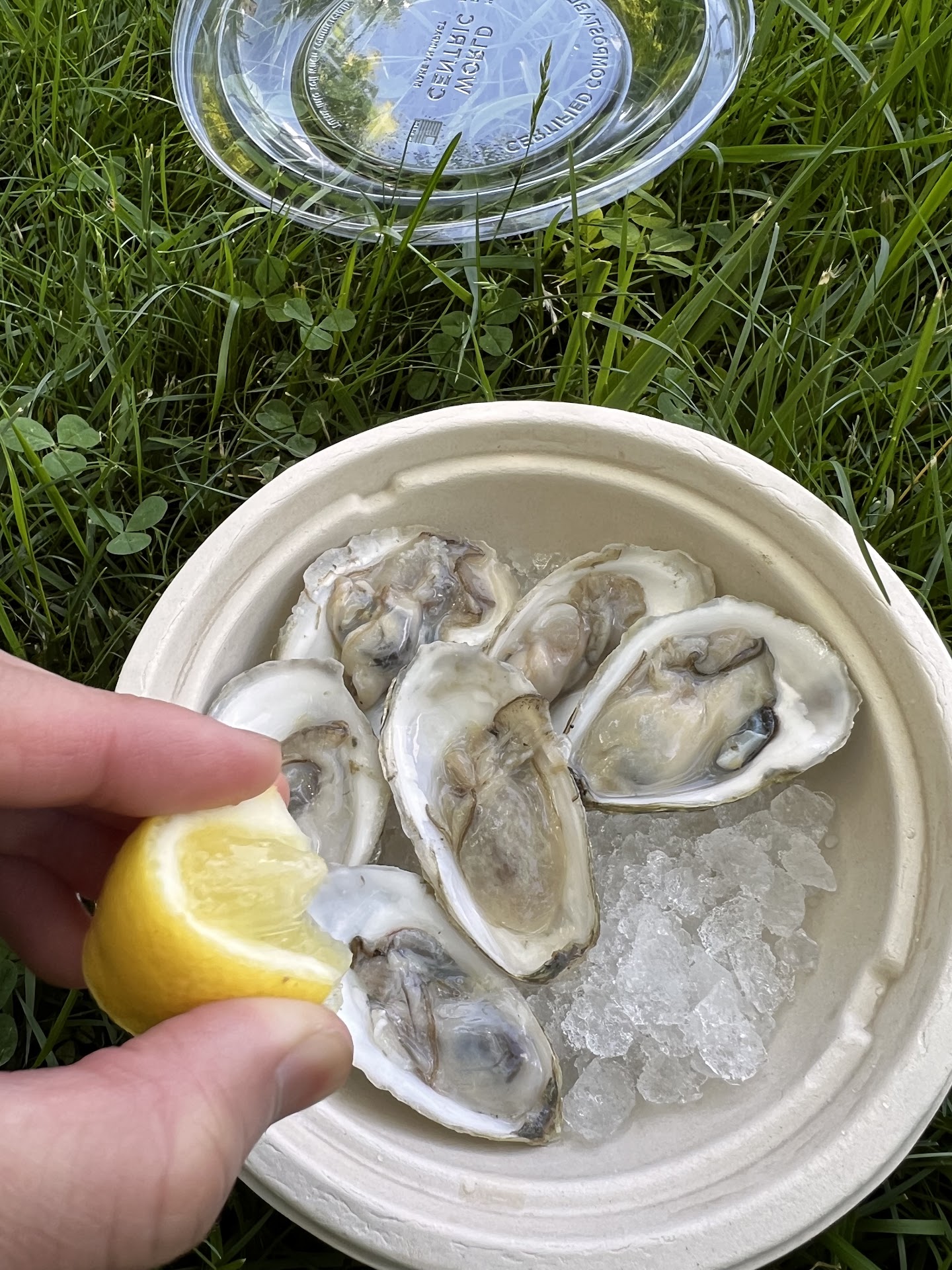 Yesterday we had our chance to go in for a late lunch/early dinner around 3 pm. We were the only people dining in, but other folks stopped on to get fresh oysters (and mussels?) to go. The atmosphere is pleasant; it's a small space, but they've made it feel airy and open.