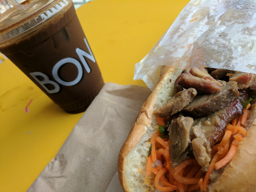Bon Me is a quasi Vietnamese fast casual eatery. I got a sandwich (also known as bánh mì) and it tasted decent. The bread was soft and a little flakey, I've had worse. The fillings were largely true to form, pickled carrots and cilantro, but the pork was questionable. Even on the menu the pork is listed as "Chinese BBQ pork". I guess it is fusion, but why not serve Vietnamese style grilled pork? Shrug, it wasn't bad I guess. Then I got a so-called Vietnamese iced coffee. The cashier poured me a cup of some very near black coffee. I asked if I could get it with condensed milk and she had no idea what I was talking about (look up Vietnamese iced coffee if you have no idea either). This was also all somewhat pricey, at around $10-11.