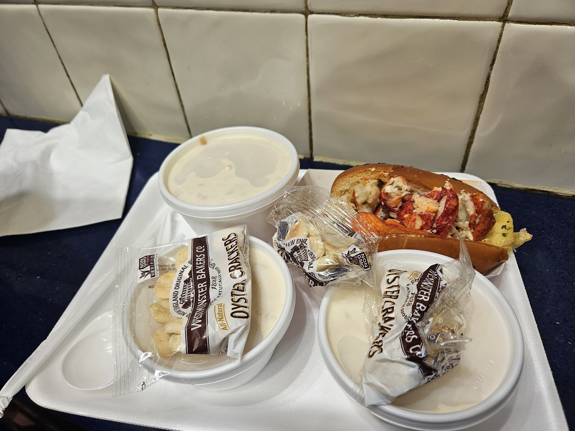 Read moreWell it was our first time in Boston and this was the first place we tried a lobster roll and clam chowder. Our expectations going in weren't high but my goodness this place exceeded those expectations in every way. The price for a hot lobster roll and small clam chowder combo was $34 and while yes that's a lot you must know that that's the going market price around that entire area. The lobster roll was hot, fresh, and the garlic butter they put on top of it just sets this place a part from the other place we went to called Union Oyster House. The bland flavorless lobster roll alone at that place costs the same and that's without any clam chowder or drink included. And just like the lobster roll, the clam chowder was also better here than at Union Oyster House. It was thicker and meatier here compared to Union Oyster House where it was runny and barely any meat just lots of potatoes. This place is located in Quincy Market which can get quite packed so we'd recommend taking your order outside and finding a bench to sit and eat on and just people watch and enjoy the scenery and countless...