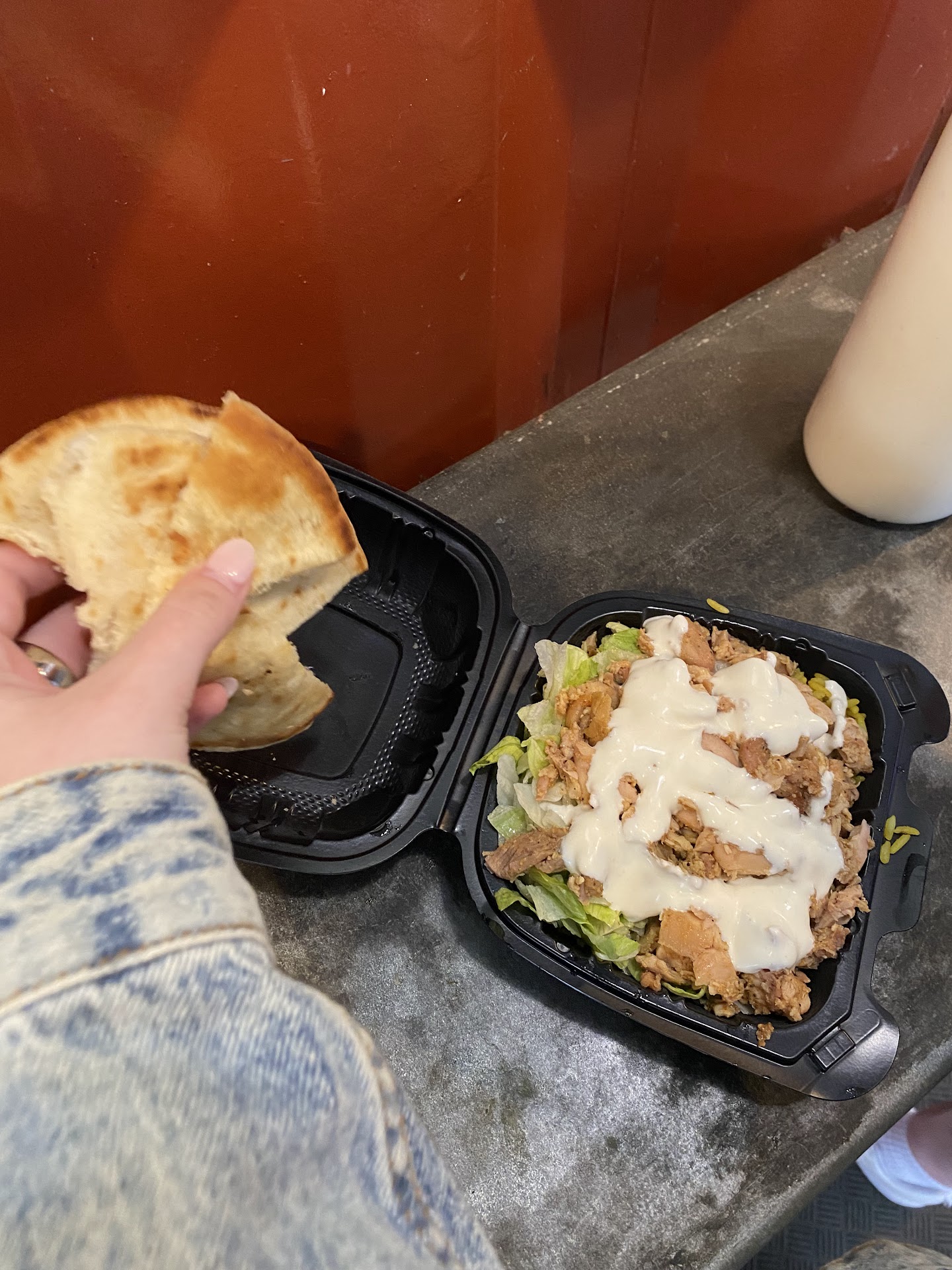 Spin-off of a halal food truck offering Middle Eastern standards like gyros served over the counter.
