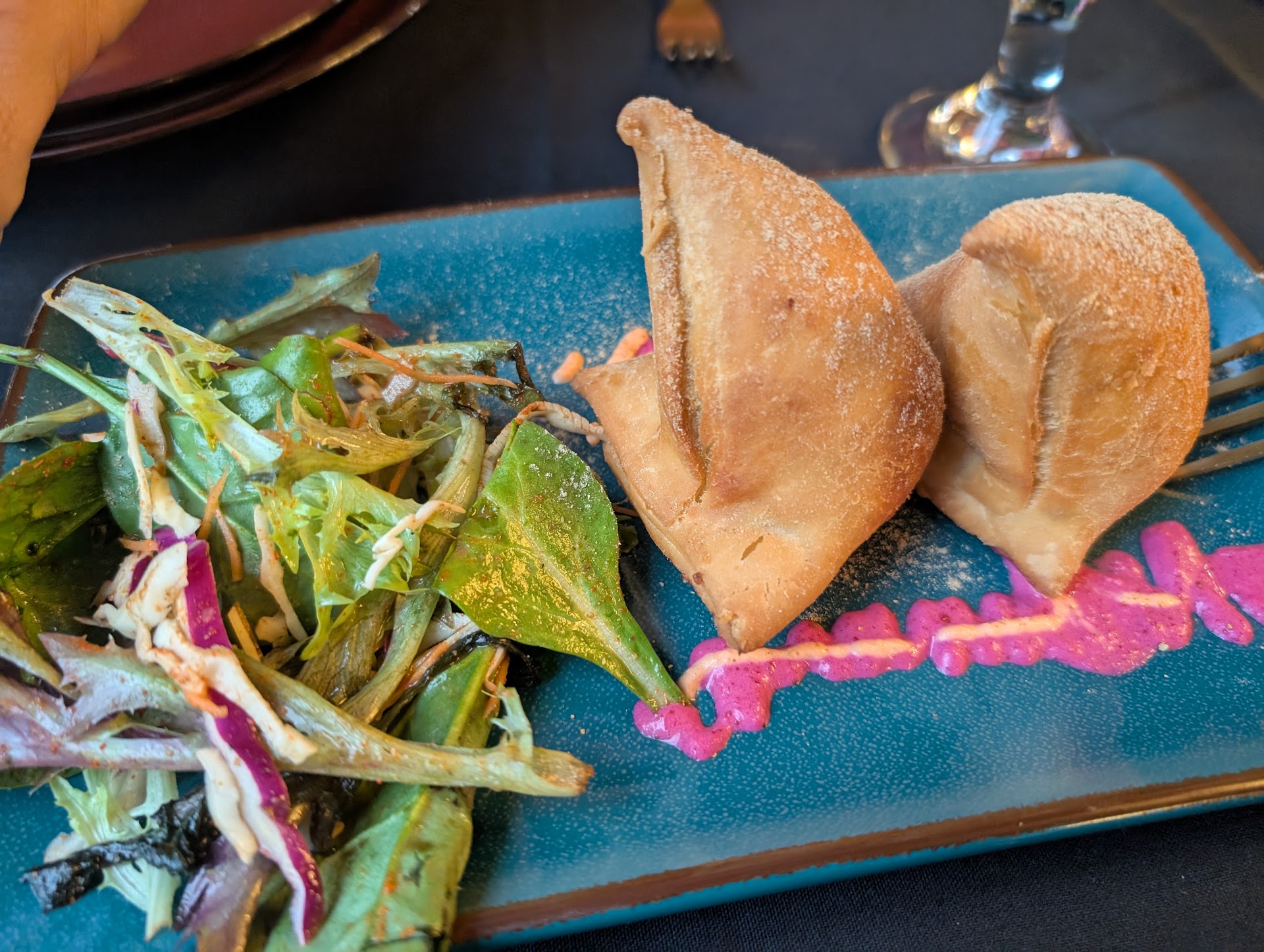 The samosas (two large pieces) were filled with fluffy, spiced potatoes. The accompanying coleslaw was vibrantly tangy and delicious - albeit quite spicy.