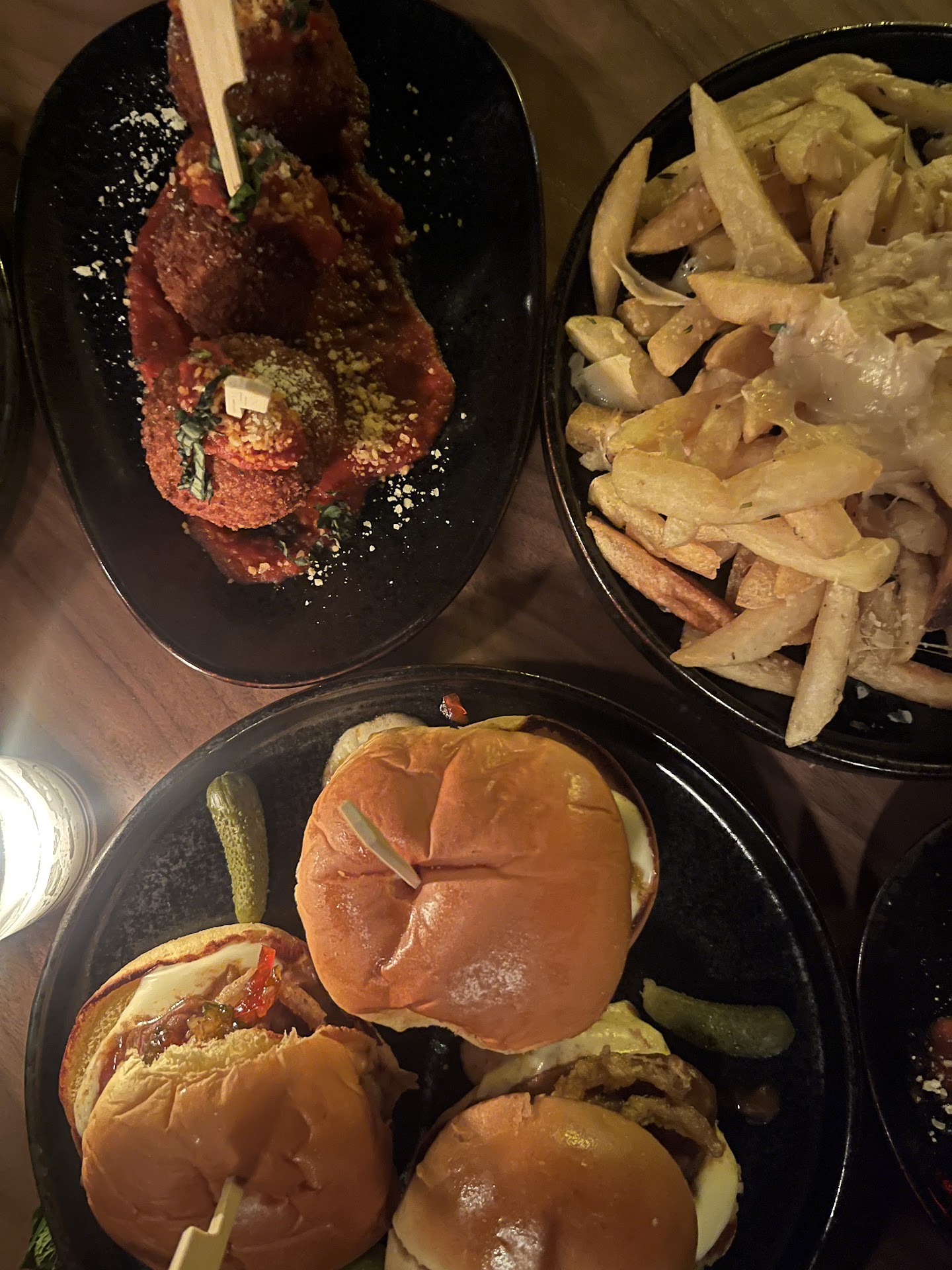 Read moreWaaay overpriced (esp drinks; $19/per, and many are tiny), and the food servings are small and expensive, and they do 3-per plate to ensure that you have to order more than one offering for a party of 4 (diabolically jacking up your bill). Dark and cozy atmosphere, and DJ comes on later (too loud btw - if it was a dance club it would work, but it't not - you can't even talk to each other once it starts).