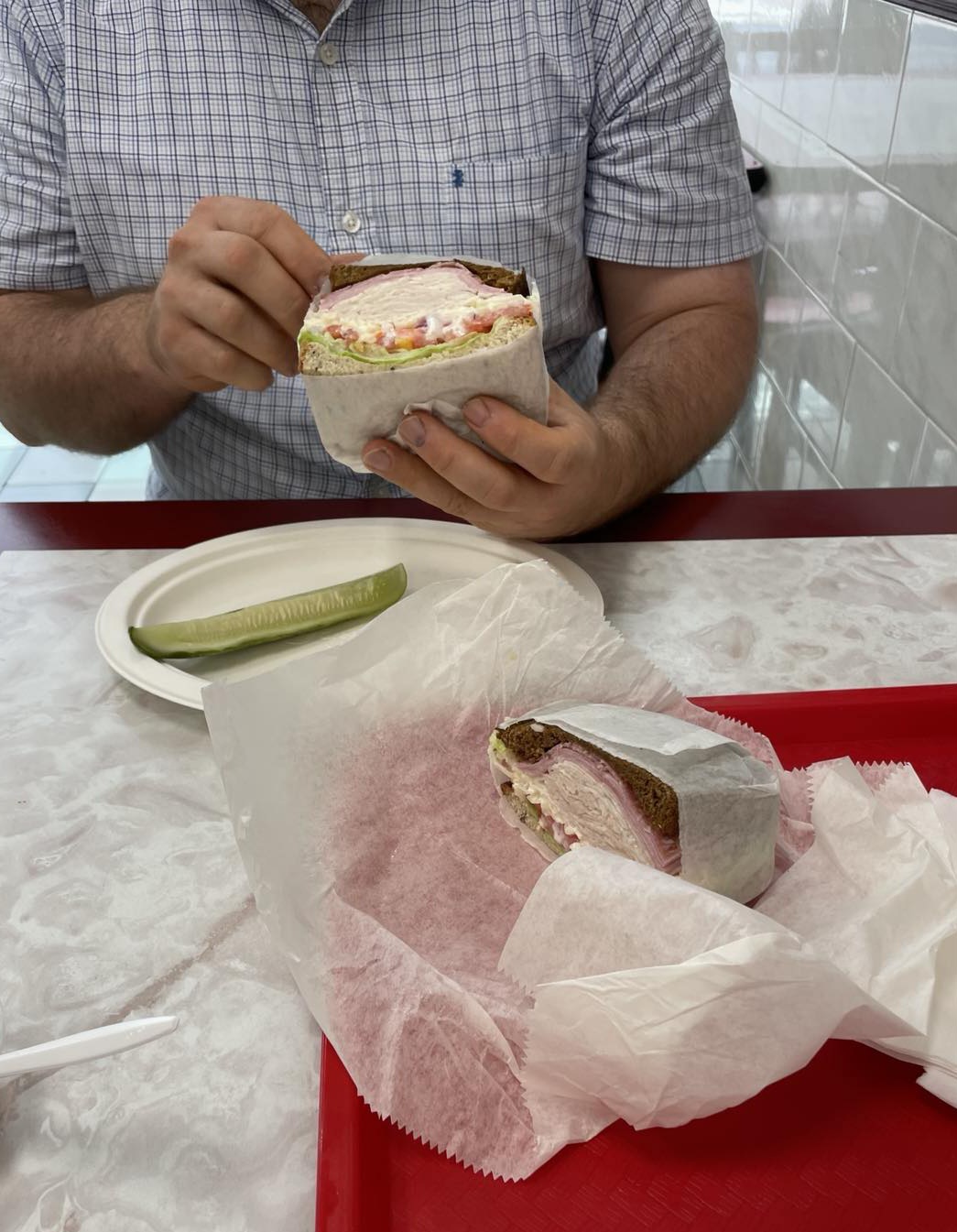Haven't had chicken salad in a while so I opted for the Chicken Salad Pita BLT. It was a great price and wrapped up quickly for my coworker and I to walk out within minutes.