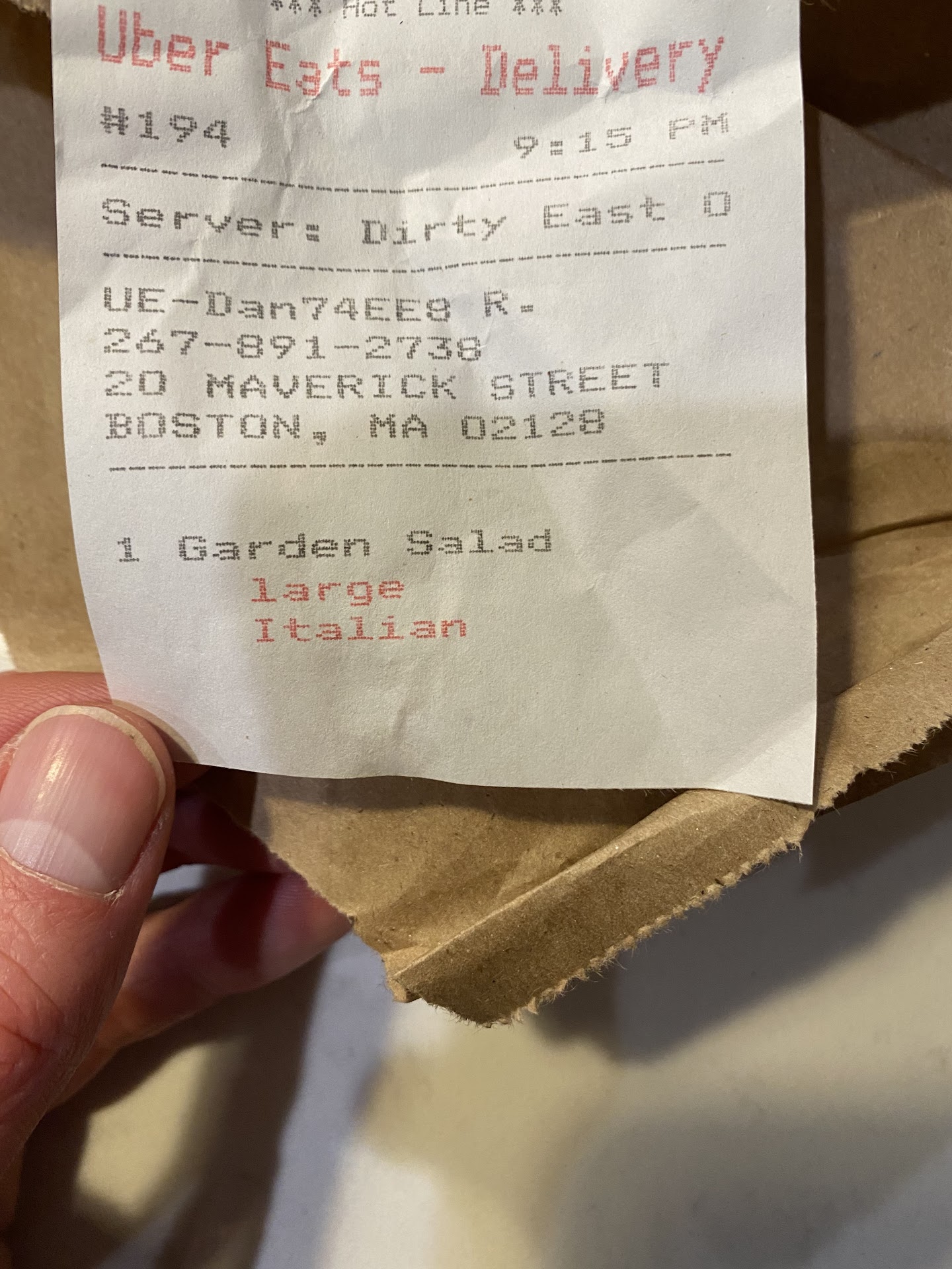 Read moreOrdered at 915pm, through Uber eats, two pizzas and a salad. The order arrives at 1045pm, but only has the salad. I call the driver and he’s adamant he only was given the salad. I call the restaurant and speak to a pretty rude woman who says it’s Uber eats’ problem. I highlight the one issue with her where the receipt, which was given by the restaurant itself, contains both the orders name and the order but it only has the salad on it. No pizzas. I call the driver back again and then call the restaurant again, only to get the same response from the lady. The receipt given in person from the restaurant only lists the salad, the driver has only delivered the salad. This was a very disappointing experience and a total scam by this place. As you can see in the pictures, the Uber eats order does not match the receipt generated by the restaurant. Additionally, why would a driver take a picture of an order dropped off when it was missing both main items?? And only contained the one listed on the...
