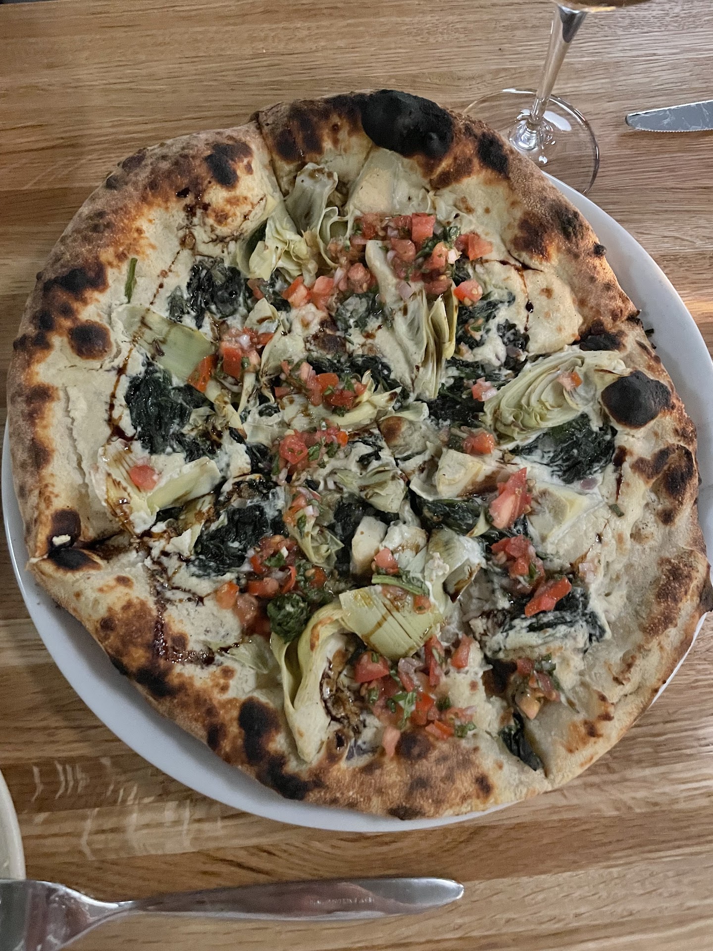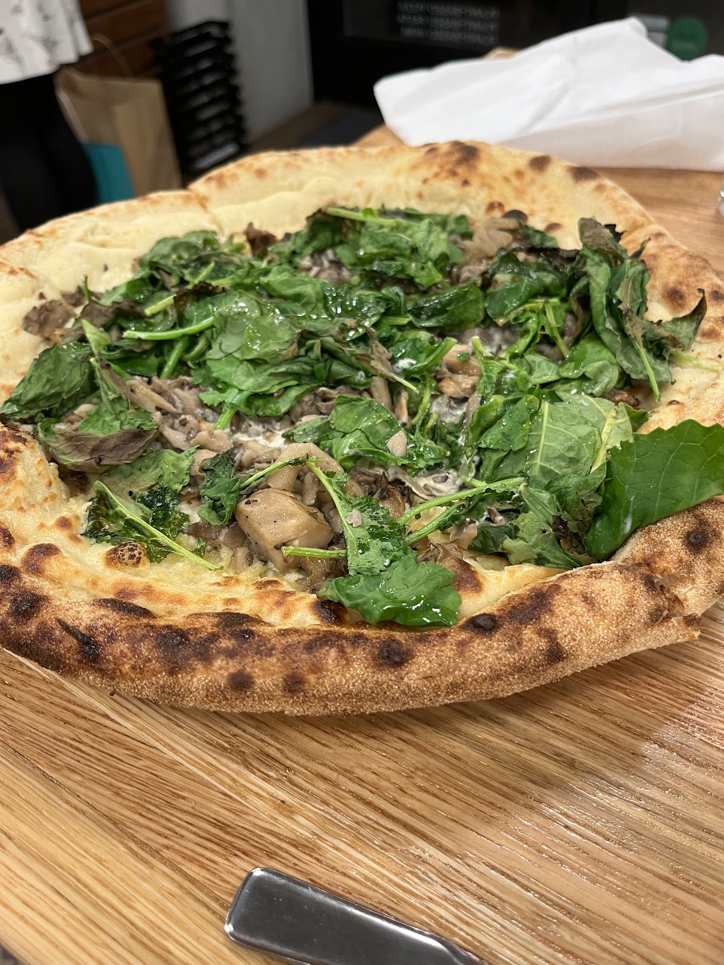 -80% of their drinks menu is out of stock. They did not have a single red wine! We were pressured to order everything in one go, one hour before closing! Even after ordering wine, it took longer to pour two glasses of wine than bake an entire pizza from scratch.