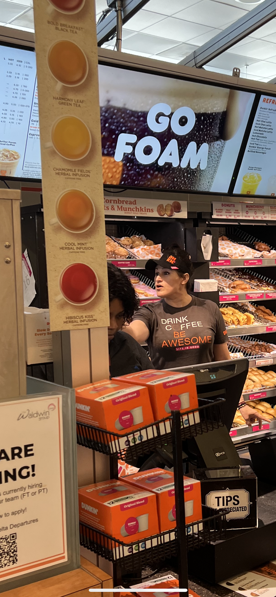 Read moreI cant believe i had an experience so bad at a dunkin.... it's bad enough that we have to pay double at the airport only to get the worst service possible but let's add in the staff opened almost 10 mins late while watching a line form as we tried to get our coffees before our flights. I was the 3rd customer to start the day and was told they didn't have any bagels and when I tried to pay with my dunkin app I was told they do not accept the app. If I could have just walked away with enough time to get something else...