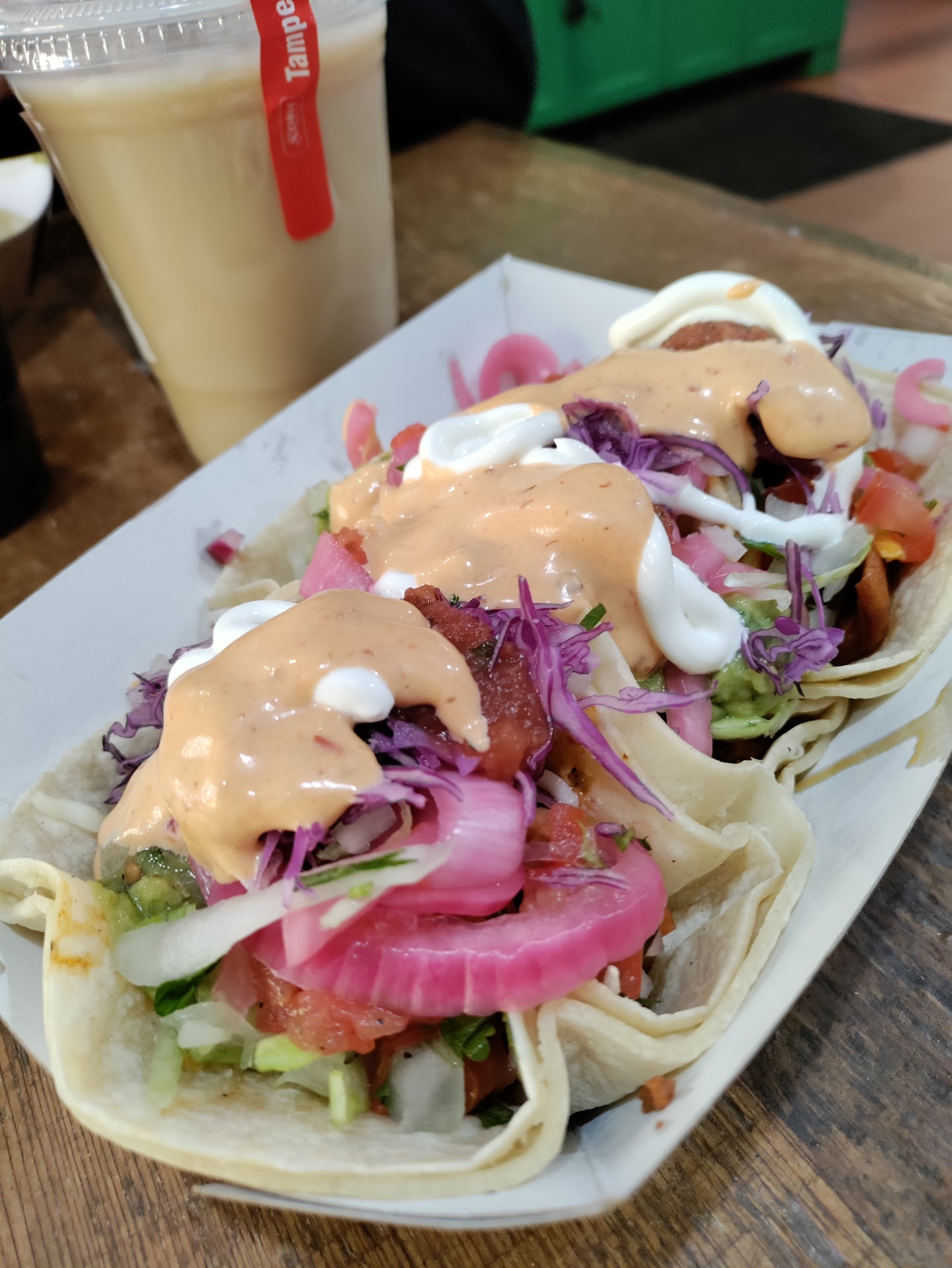 Each taco contained at least 6 full size shrimp, mounds of veggies, a full layer of rice, another full layer of beans, and all the other mix ins. The tacos barely fit in their container, let alone their soft shells. This is where the attack comes in.