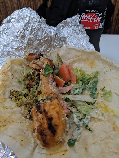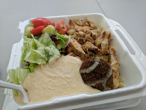 The rice is hard and dry, the chicken is dry, and the lettuce is hard and bitter. The hummus is decent, but it's the only way to give the plate any sort of moisture. The pita bread is hit-or-miss, with it often being tough and dry.