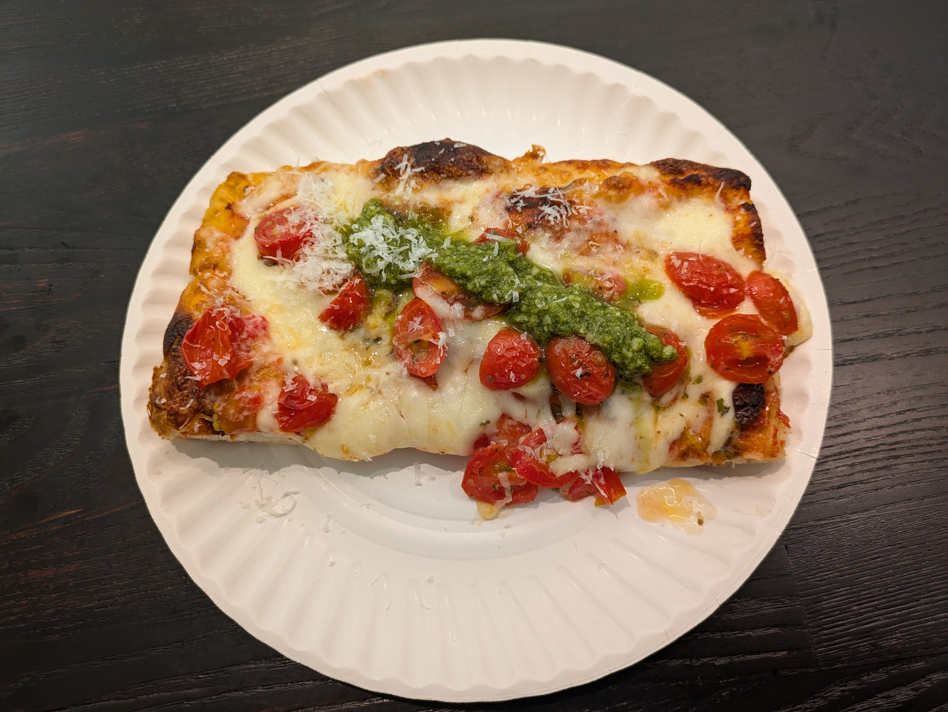 I was taken aback at the quality. The crust was thick, so I thought it would be heavy and too bready, but it turned out to be a wonderfully light and airy foccacia crust. It reminded me of the amazing pizza al taglio we got from Gabriele Bonci's Pizzarium in Rome--it had the same delicate texture and airiness.