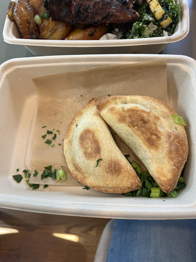 The first plate was less spice than normal for jerk chicken, but still so flavorful and juicy, not dry! She pulled it out of the main buffet stain behind the counter where you order. Compostable bowls and recycleable tops are also a clear win for me. It was so good I clean the plate. If I left 2 rice crumbs behind I would be surprised.