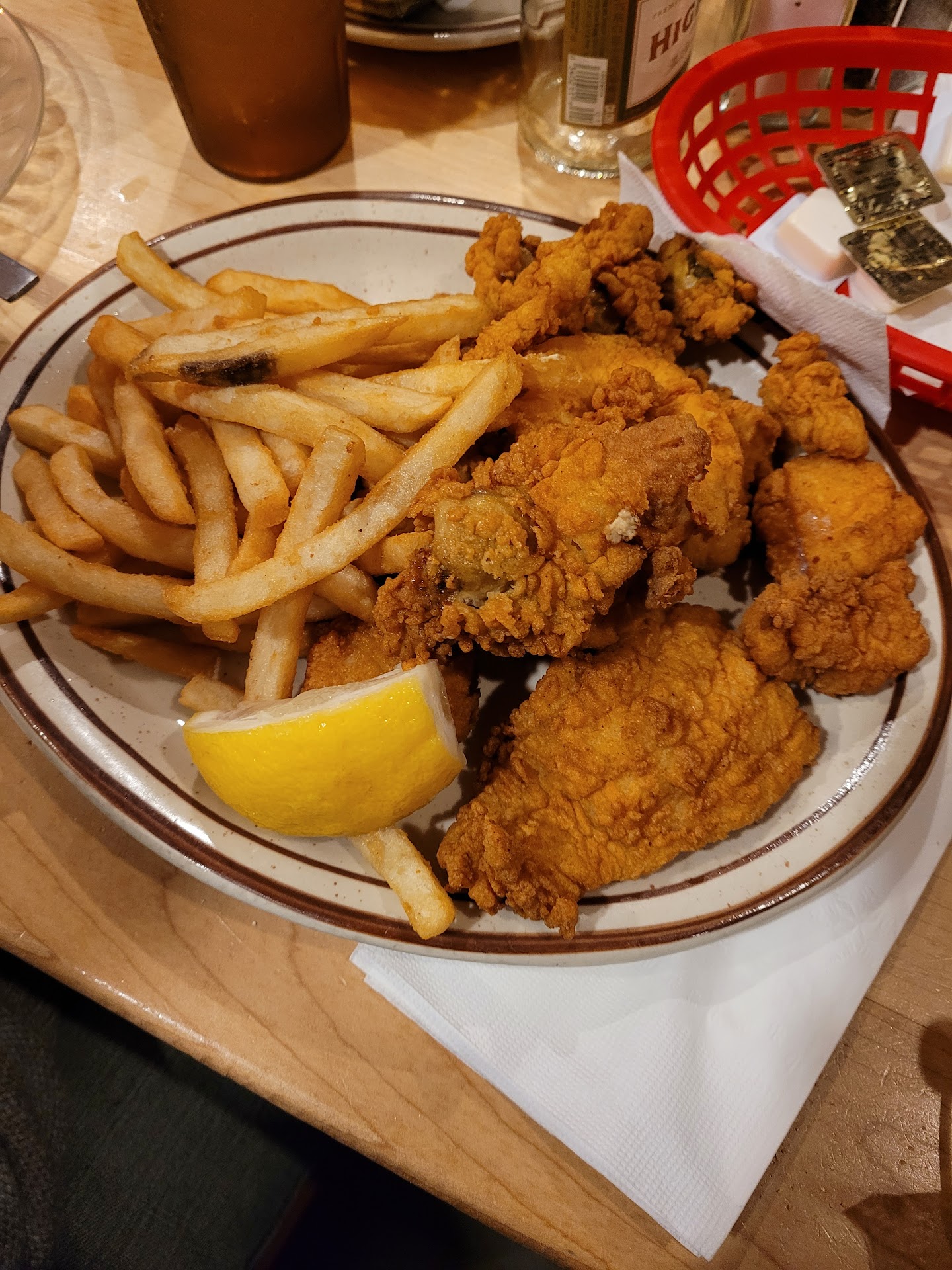 Read moreVisiting from another state. Came here with some friends who told me this was the best place for fried clams which I was craving for. They said order the seafood platter which comes with the best clam chowder. The place was packed. We were squished waiting at the front door which was the only place to wait until your name was called. My opinion, it was like a hole in the wall where locals gather. (Nothing wrong with that. ) The waitress was pleasant but extremely busy. We all ordered the fried seafood platter plate. It wasn't long before our food arrived. As soon as the plate was sat before I was immediately disappointed. I really wanted fried clams and they gave me 4 clams with the bellies, 4 shrimp, 3 scallops and 2 half pieces of fish. I was looking for a plate overflowing with these items since it's called a platter. Tasting every item including the clam chowder left me disappointed as there was no good seasonings that I liked on any of the food. The only thing I enjoyed was the fries. I'm leaving this spot to the locals who seemed to really enjoy the food while my search continues for great fried...