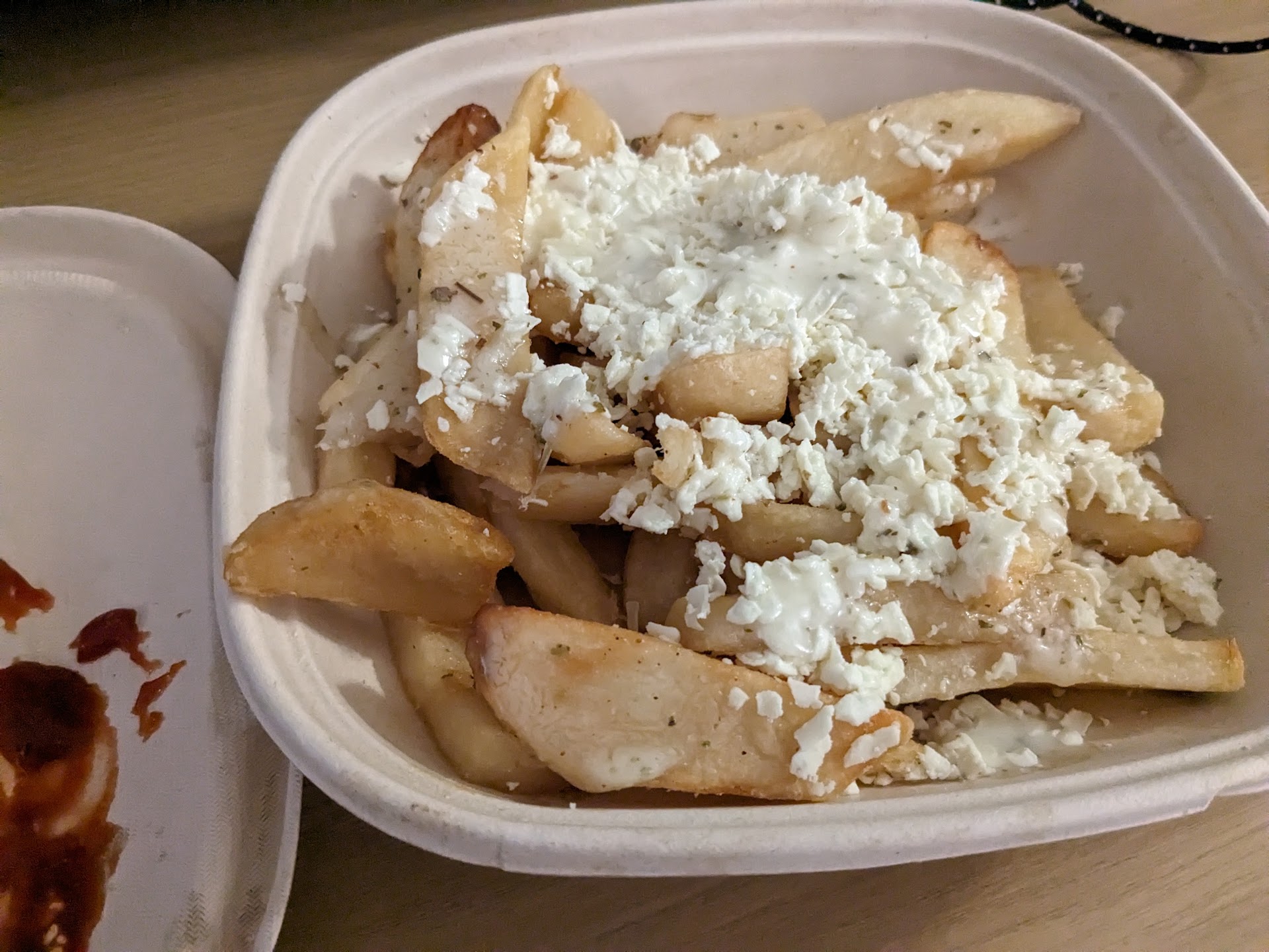 Read moreOrdered a lamb gyro and feta fries through Uber eats. The chunks of meat and tomatoes were larger than bite size. I had to take apart the sandwich, rip up the meat and pinched the cores from my tomato chunks. The cucumbers were cut weird too. I asked for ketchup and got 5 packets which clearly is not enough for this amount of fries. Fries underdone.