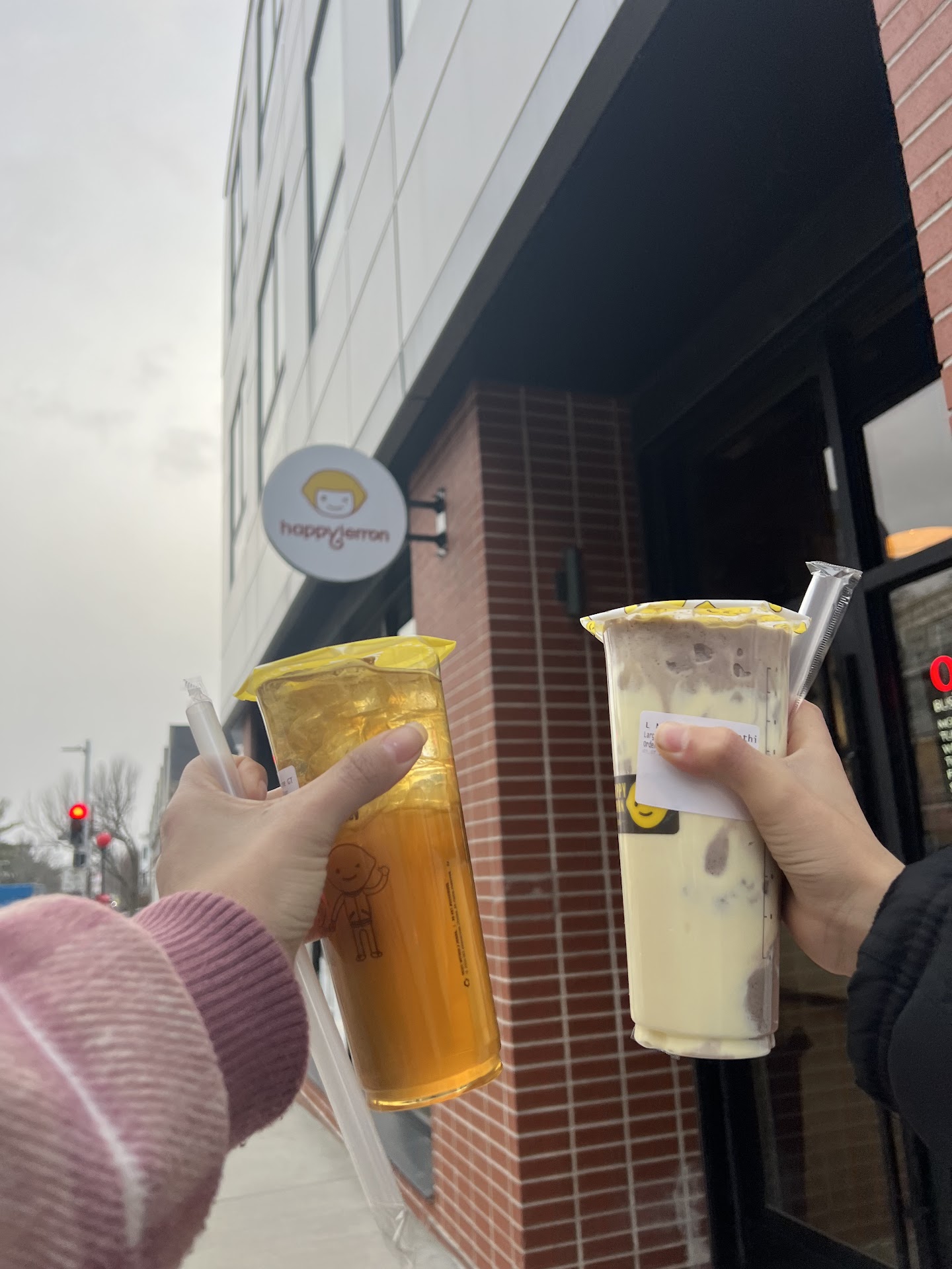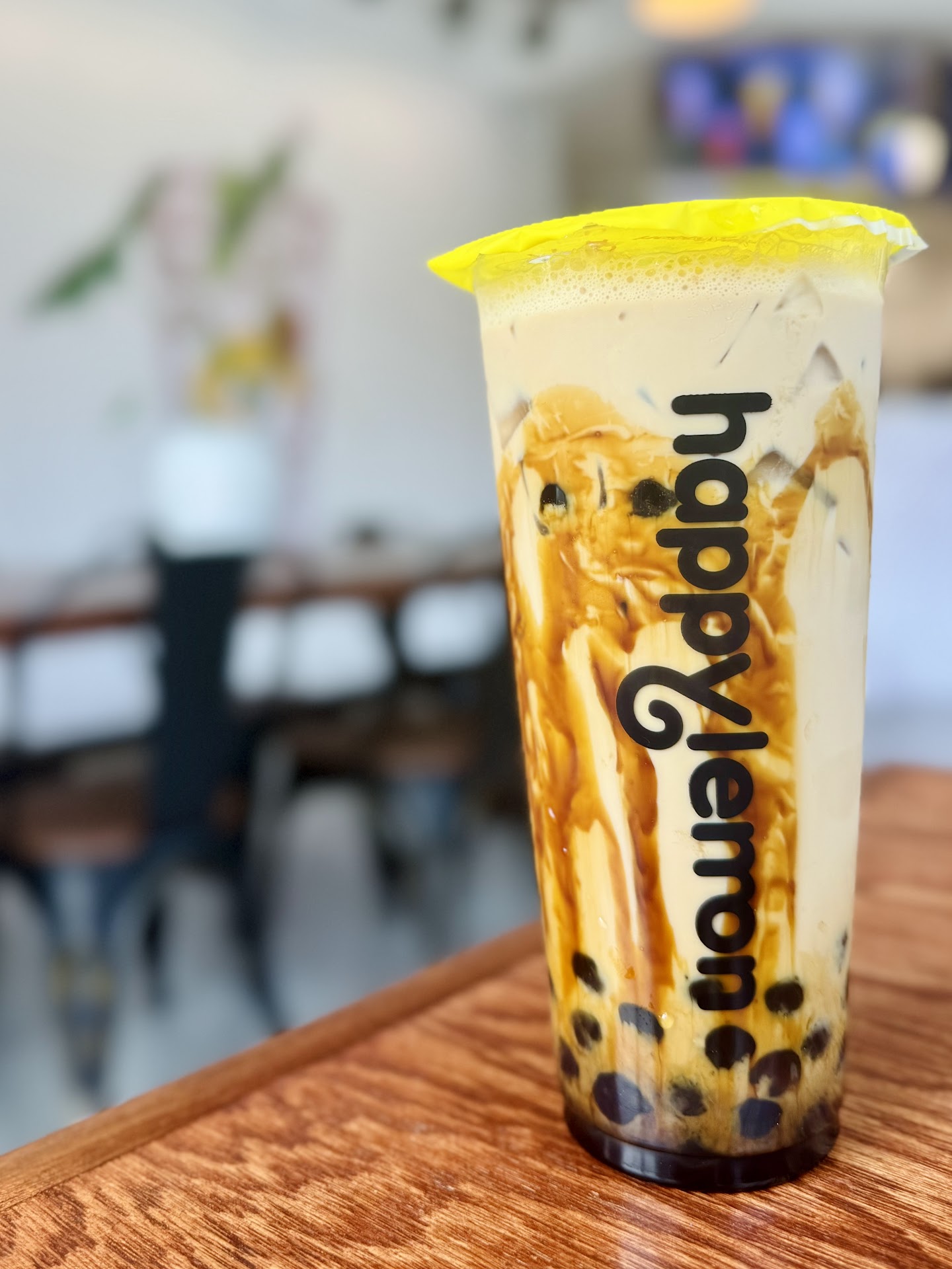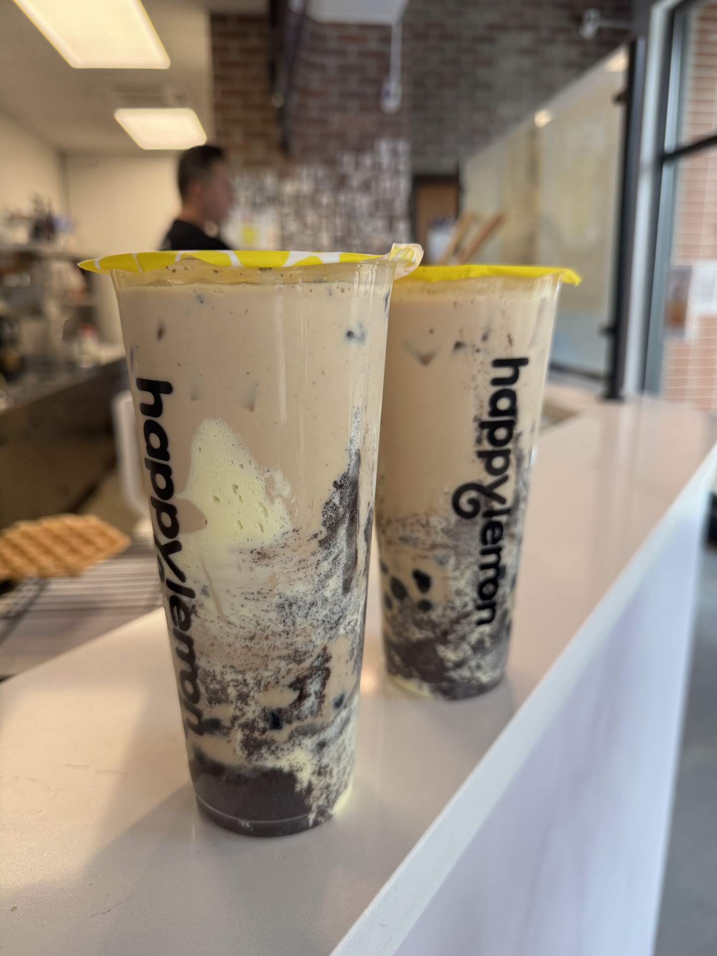I stopped in for my first visit to Happy Lemon 🍋 in Jamaica Plain and was pleasantly surprised! Jason, the owner, was at the front counter and took time to learn what our preferences were for tea or fruit flavors. He’s very personable and explained the top favorites for milk teas which is what we wanted. We decided on Milk Tea with Oreo, “puff” cream and boba. What a creation! 🧋