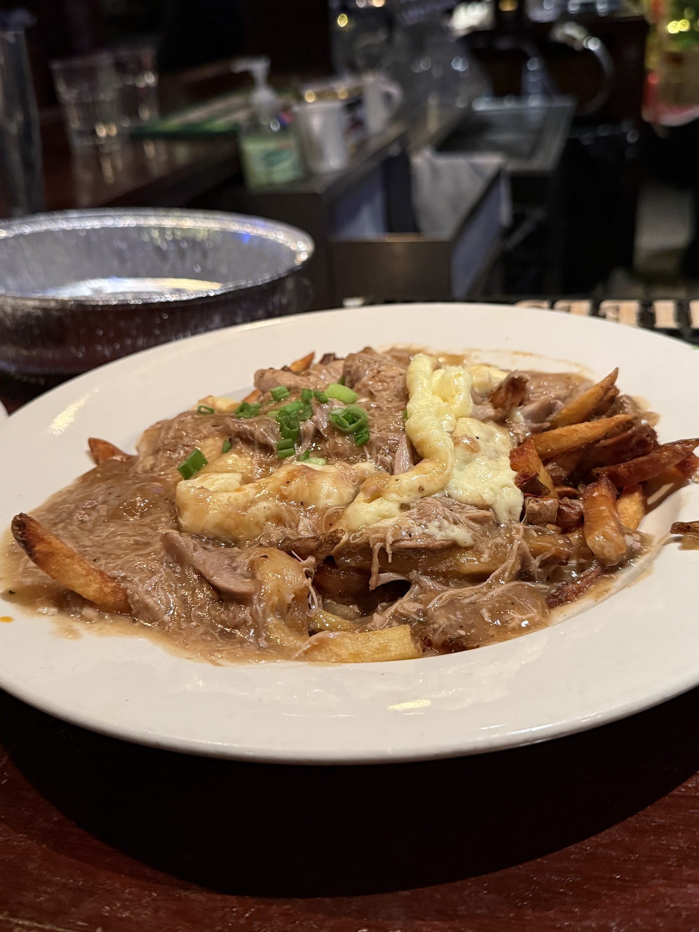 For food, we ordered the wings with buffalo sauce on the side and the duck poutine fries. Unfortunately, the wings were completely unseasoned, tasting like they had just been battered in flour and fried without any seasoning. The duck poutine fries were burnt. While I didnāt want to make a big deal, my friend decided to bring it up with the bartender. His response was dismissive, he said since we had ādug into,ā he couldnāt take the dish off the bill, even though weād only had two bites.