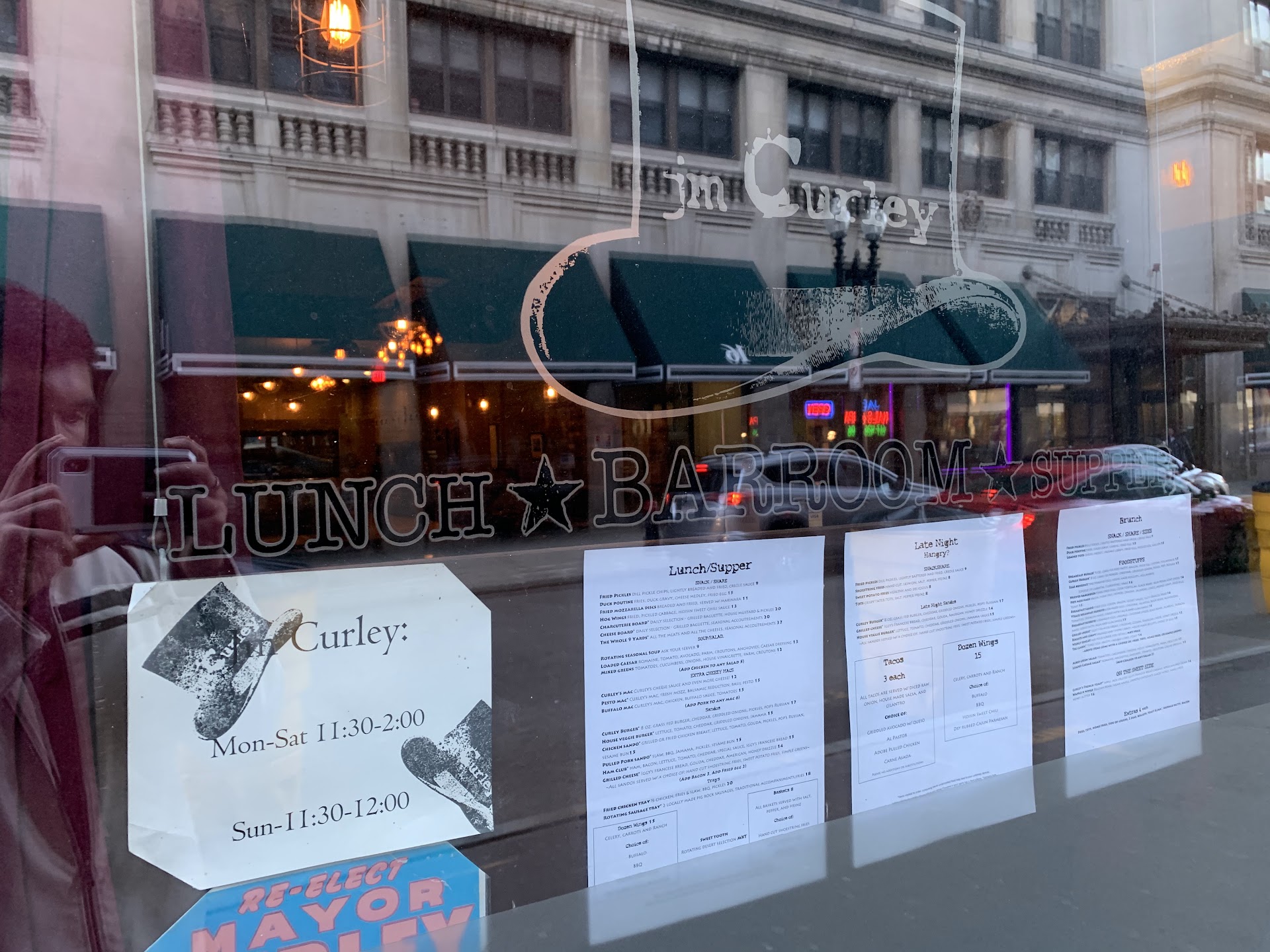 ย ย ย Read moreThis is the kind of place Downtown Crossing has been needing for decades. At lunch, it is a space for workers to get a quick sandwich plate or burger and maybe a surreptitious beer. Then jmCurley really comes alive after work -- it fills up instantly with people looking for an expertly made cocktail from an ever-evolving list of craft cocktails. The Temple Place G&T - made with bark powder - is my favorite variation on the classic in the entire city. Beer lovers aren't left hanging either. A handful of taps, mostly from local brewers, always offer a variety to suit most palates -- if not, their well selected bottle and can selection can definitely meet your needs. They also keep a chef's stock of 40s and tall boys for those days when that's what you really need, too. Food at dinner time includes a variety of tasty bar snacks. If the pretzels are on the menu, you need them. Same can be said for the deviled eggs. The entree list on the printed menu is very small, but it is supplemented by a list of 7 weekly specials that change (wait for it) weekly. Those specials always include a burger, a pb&j, a flavored popcorn (free!), as well as whatever chef Monsour and his team have on their minds that week. This ain't health food, folks, but it's hearty, tasty as all hell, and meant to share. In a city that has gone burger crazy, jm Curley offers 2 takes -- a smaller flat griddled patty, and a large fat grilled patty -- representing both of the major schools of burger thought. Both are excellent and you will likely gravitate to the style you ordinarily prefer. For "dessert" get a boozy concrete -- an ice cream based drink spiked with booze (and often fun accouterments like raisins soaked in so much rum they're damn near grapes again), and the skillet cornbread -- a variation on the new england version of the bread that has a pudding-like consistency perfect for dessert. After the work-crowd rush, Curleys is perfect for neighborhood denizens to stop in for dinner. Then the place explodes again as restaurant workers get off shifts across the city, as, at its core, this is an industry hangout. Any time after 10 you're likely to be rubbing elbows with the elite of the city's kitchens, just don't be a d-bag about it, as ownership is committed to keeping this place as a safe haven for those looking for an escape from nightmare customers. That said, if you're not in the industry, you are treated as if you were, and that is a wonderful feeling in a...