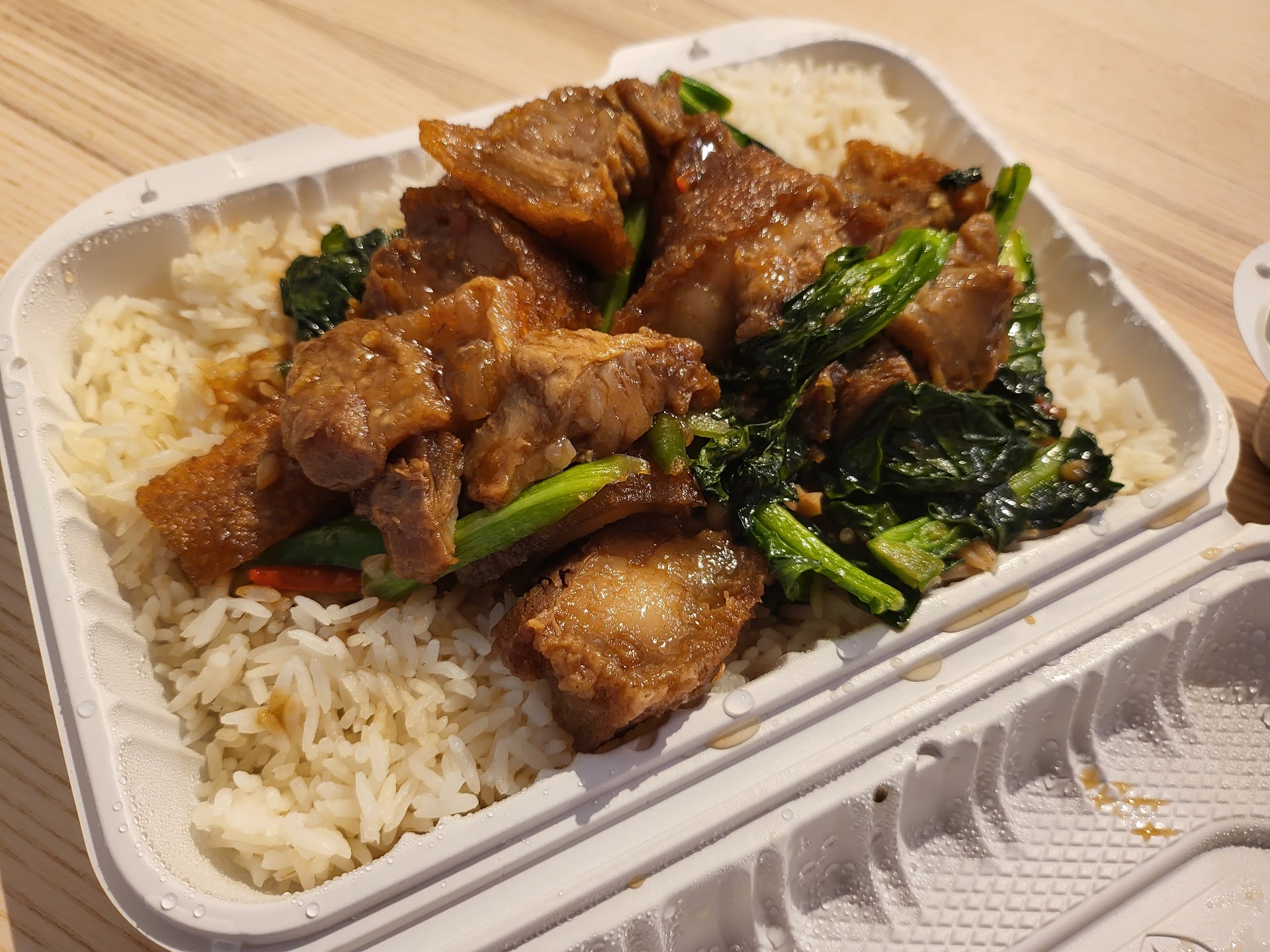 The food was not very enjoyable, a bit too spicy and greasy. And it was serve in disposable containers instead of real dishes and cutlery, although we dined in. Styrofoam plates do not feel good and they're very bad for the environment; paper plates would be better (and real plates would be much better).