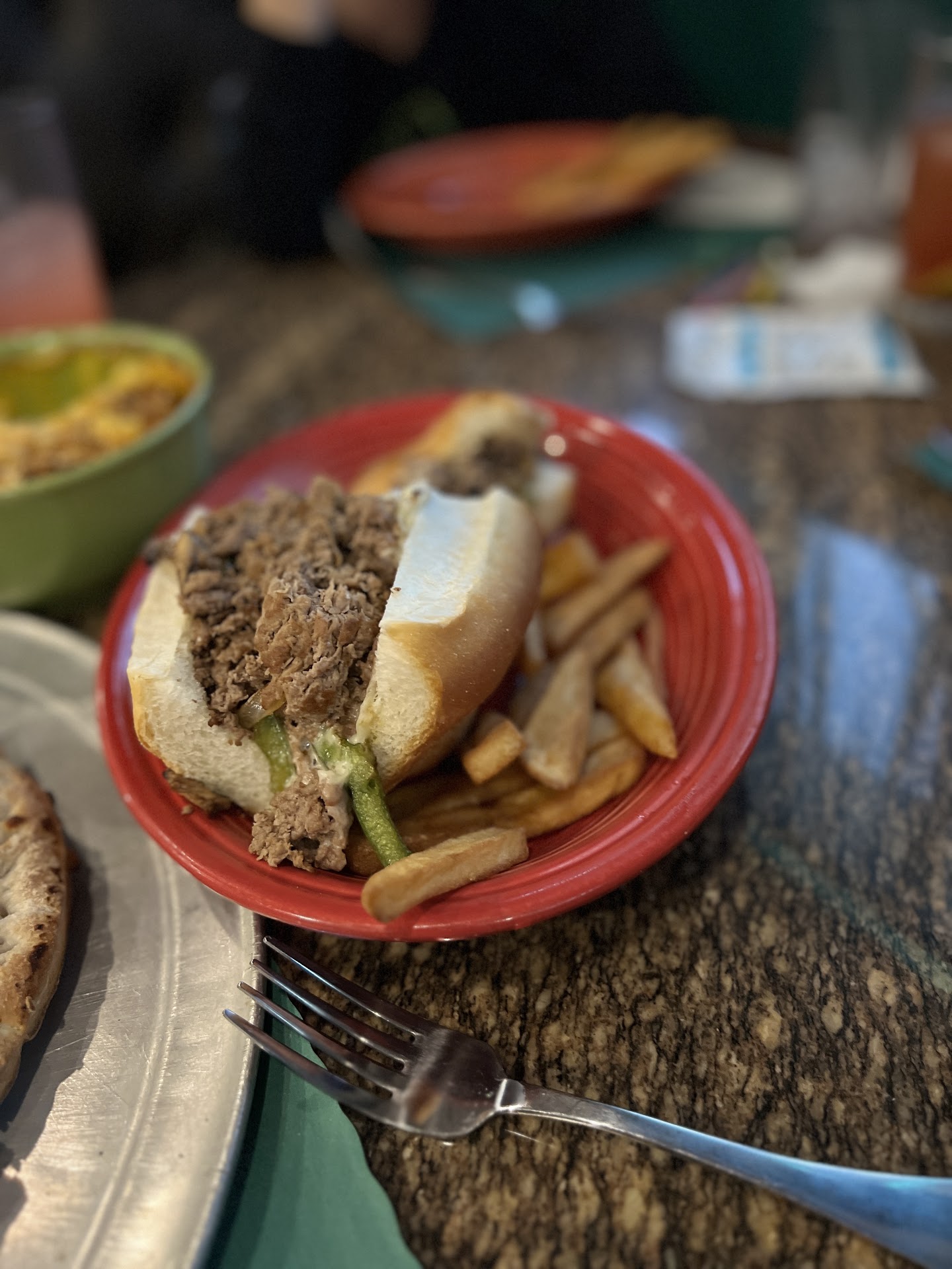 The food? Total afterthought. The chicken parm was bland and buried in overcooked pasta. The fried shrimp had a weird tangy taste, like theyâd been sitting around too long. Definitely not fresh. Definitely not good.